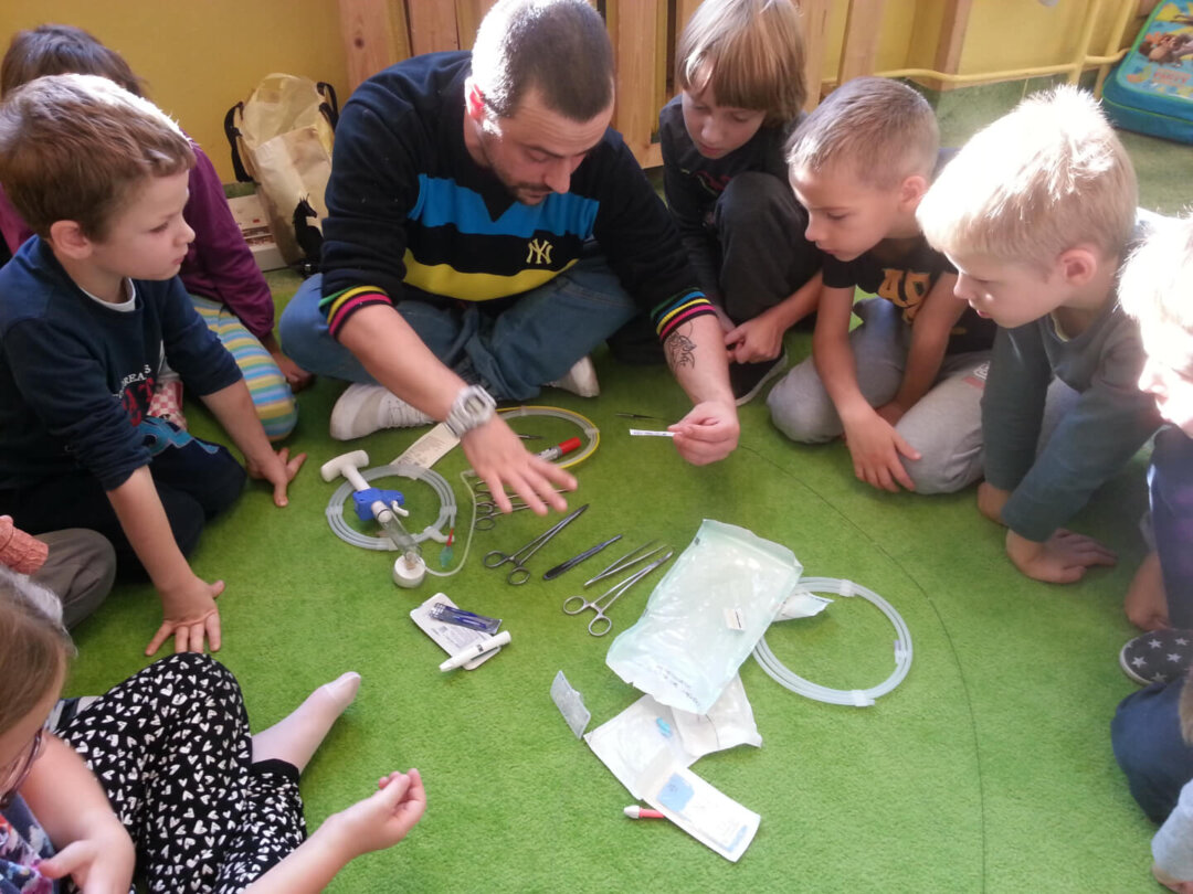 Dzięki naszemu wspaniałemu gościowi dowiedzieliśmy się jak zbudowane jest serce i za co odpowiada. Dodatkowo mogliśmy oglądać przyrządy, którymi ratuje się ludzkie życie.