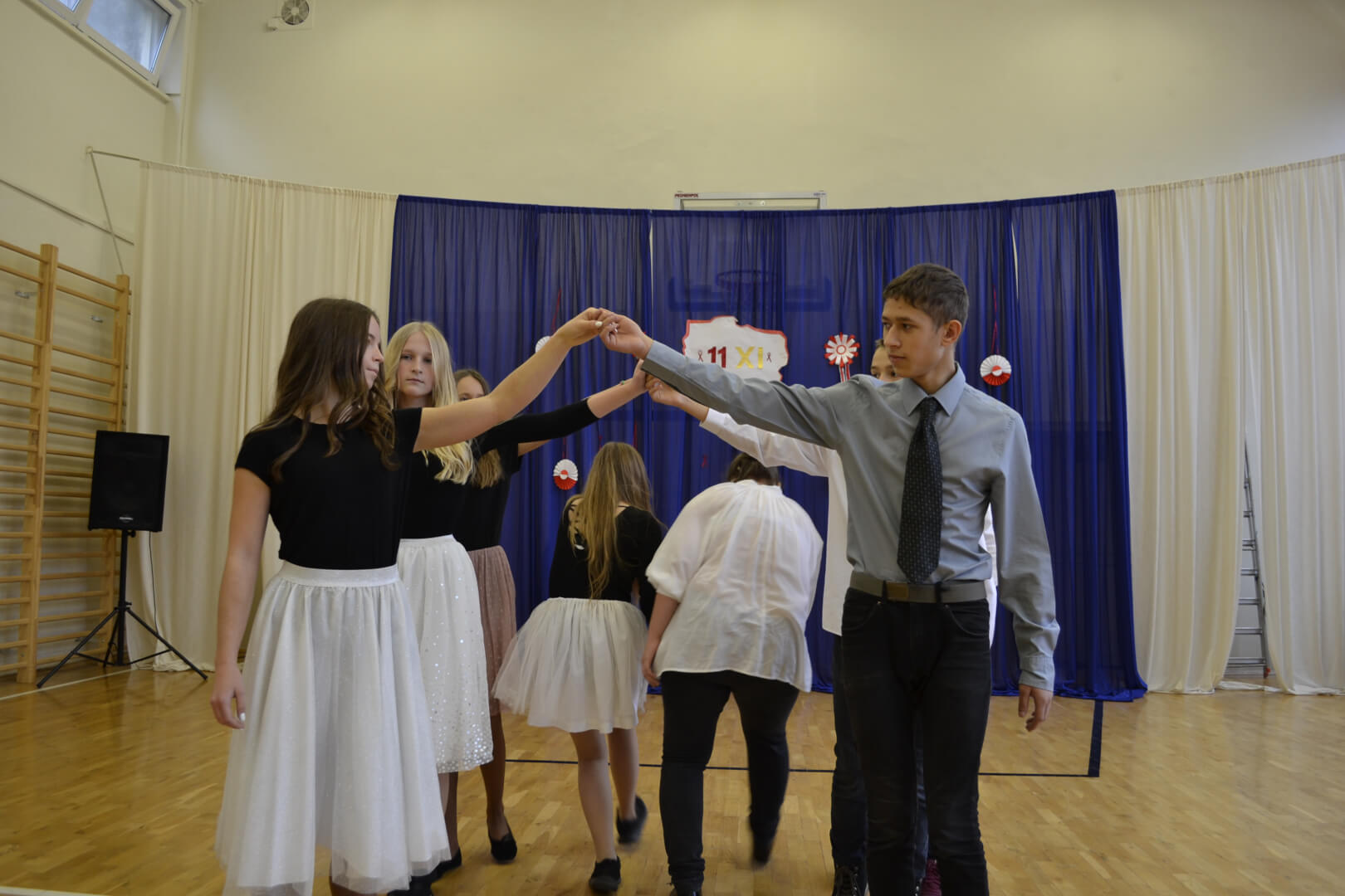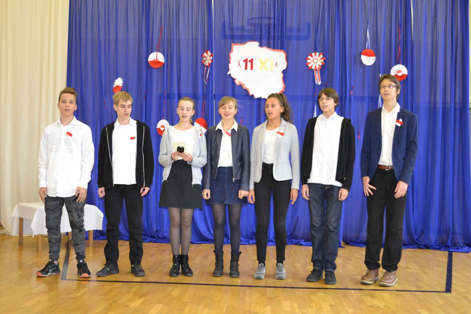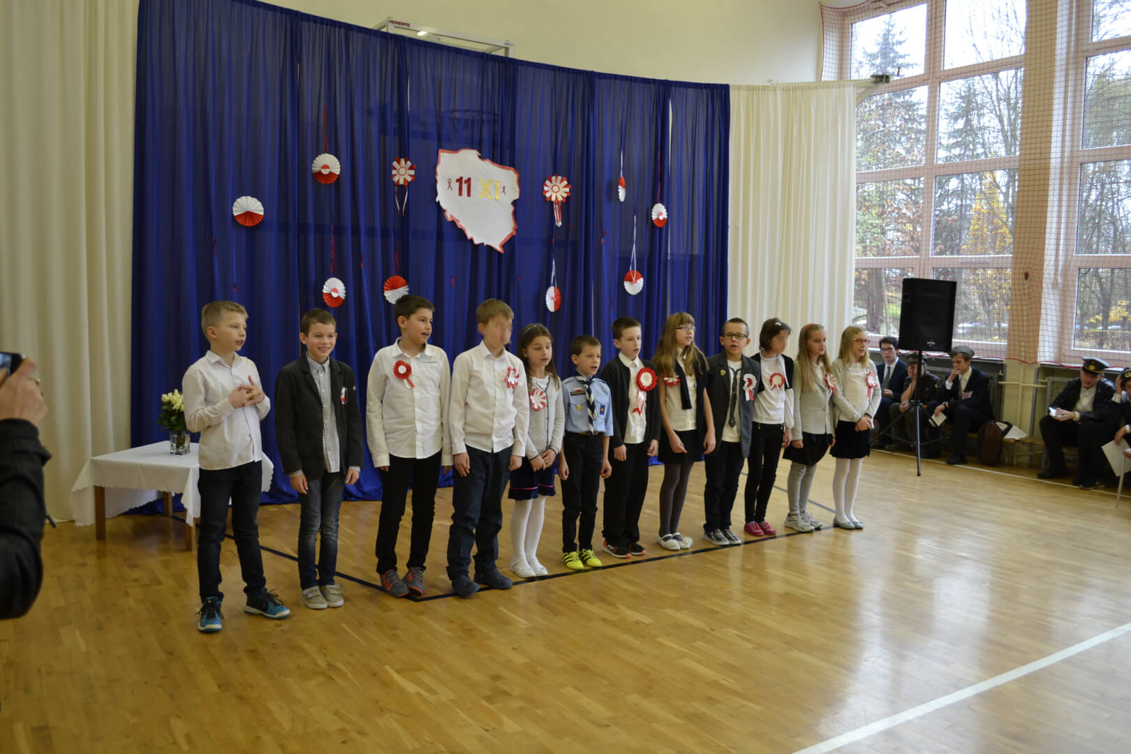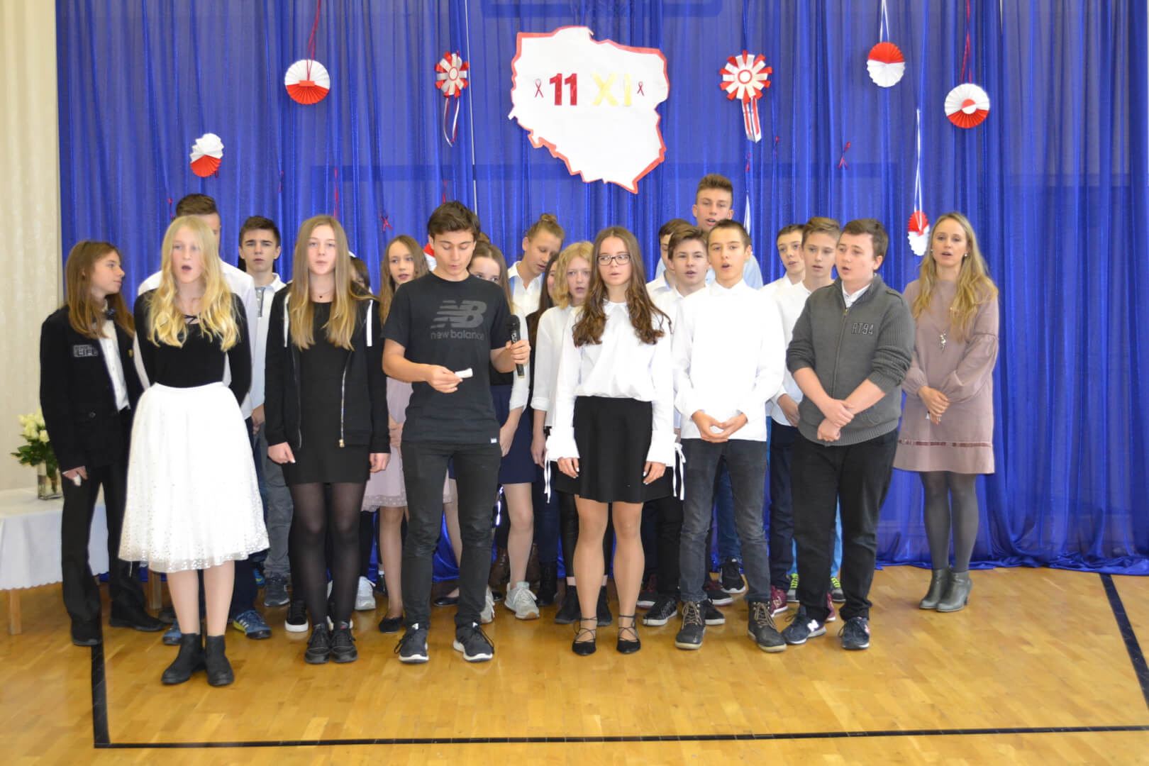 Uczniowie naszej szkoły uczcili Święto Odzyskania Niepodległości konkursem pieśni patriotycznych. Pierwsze miejsce zajęli uczniowie klasy 5 i 6, drugie klasa 3, a trzecie klasy: 1, 4 i 7. Uroczysty apel rozpoczęła grupa uczniów pod kierunkiem nauczyciela historii, mgr Marka Wilczka, która przedstawiła krótki rys historyczny. W części artystycznej uczniowie zaprezentowali tańce polskie oraz taniec z flagą.