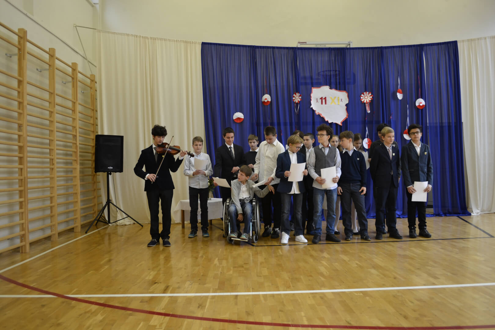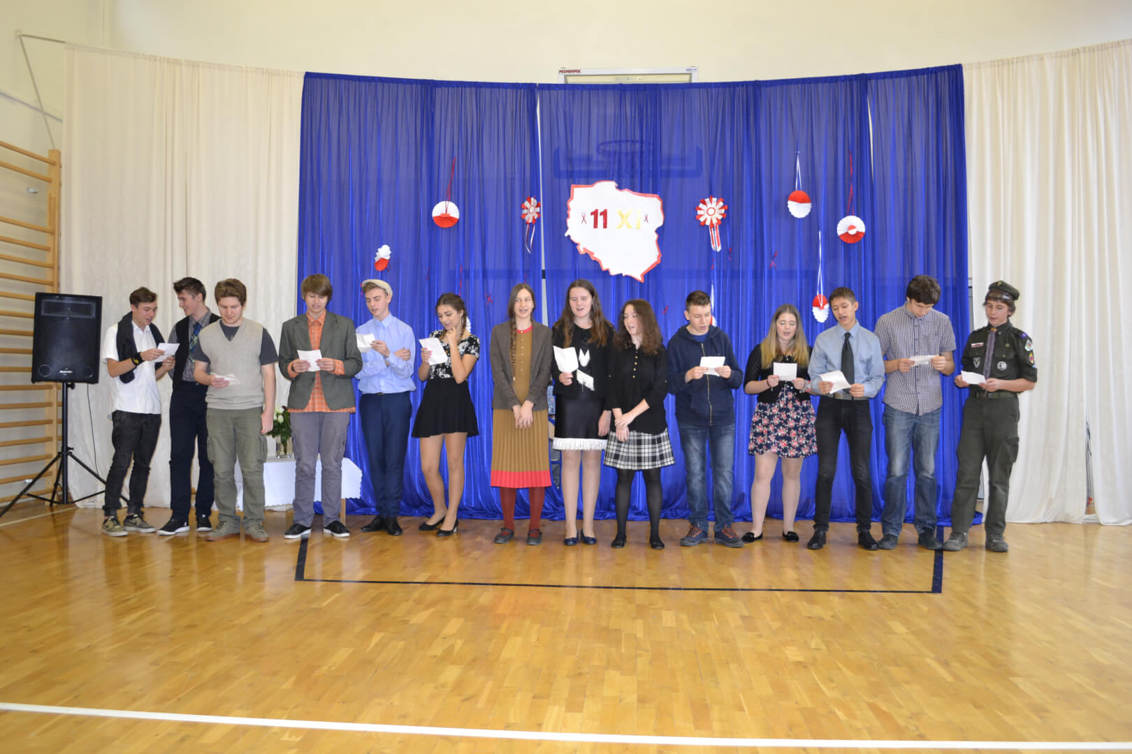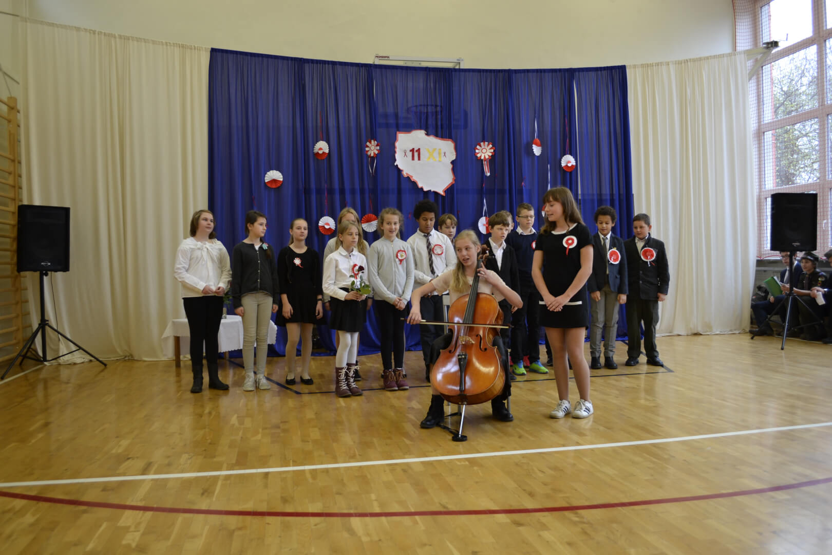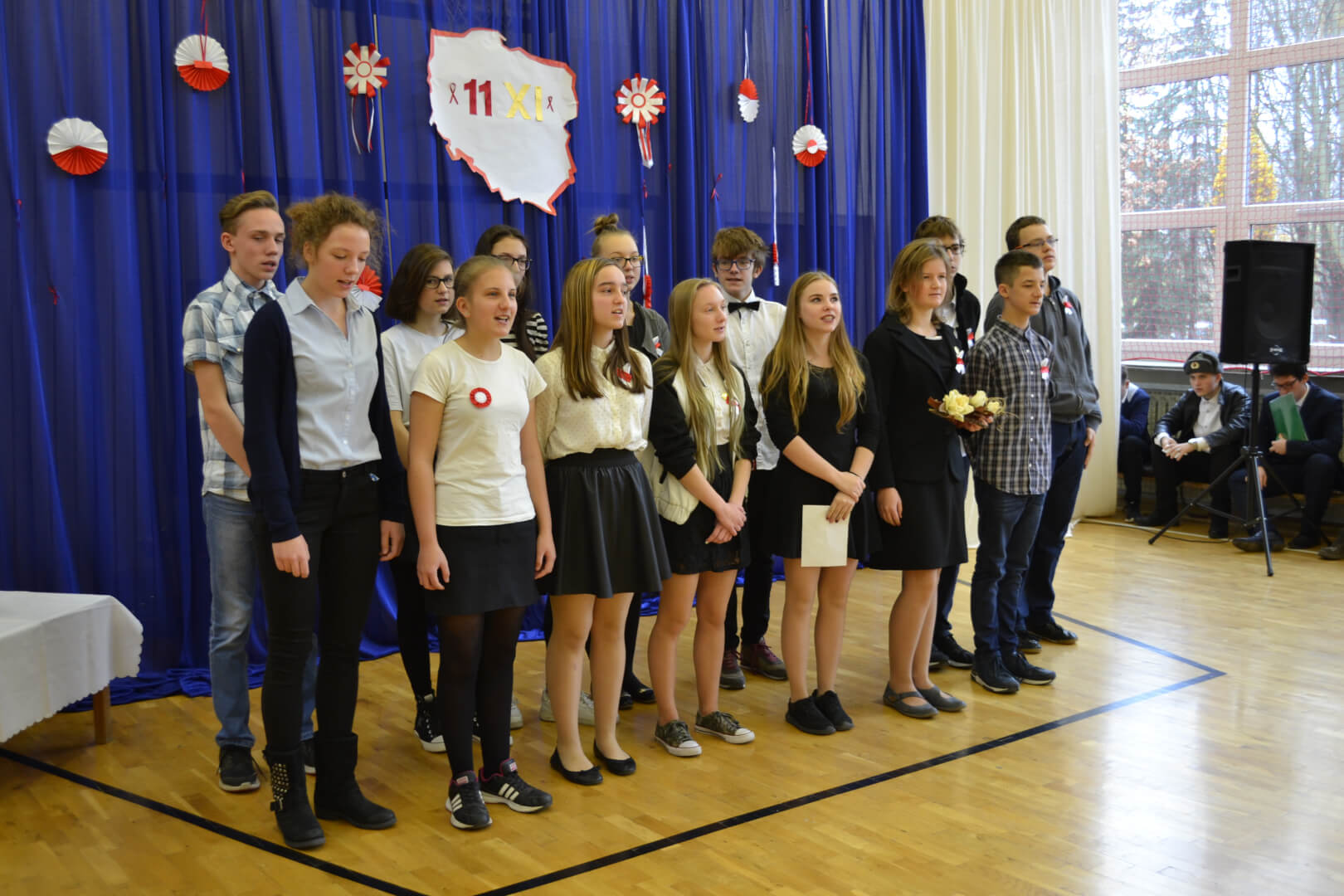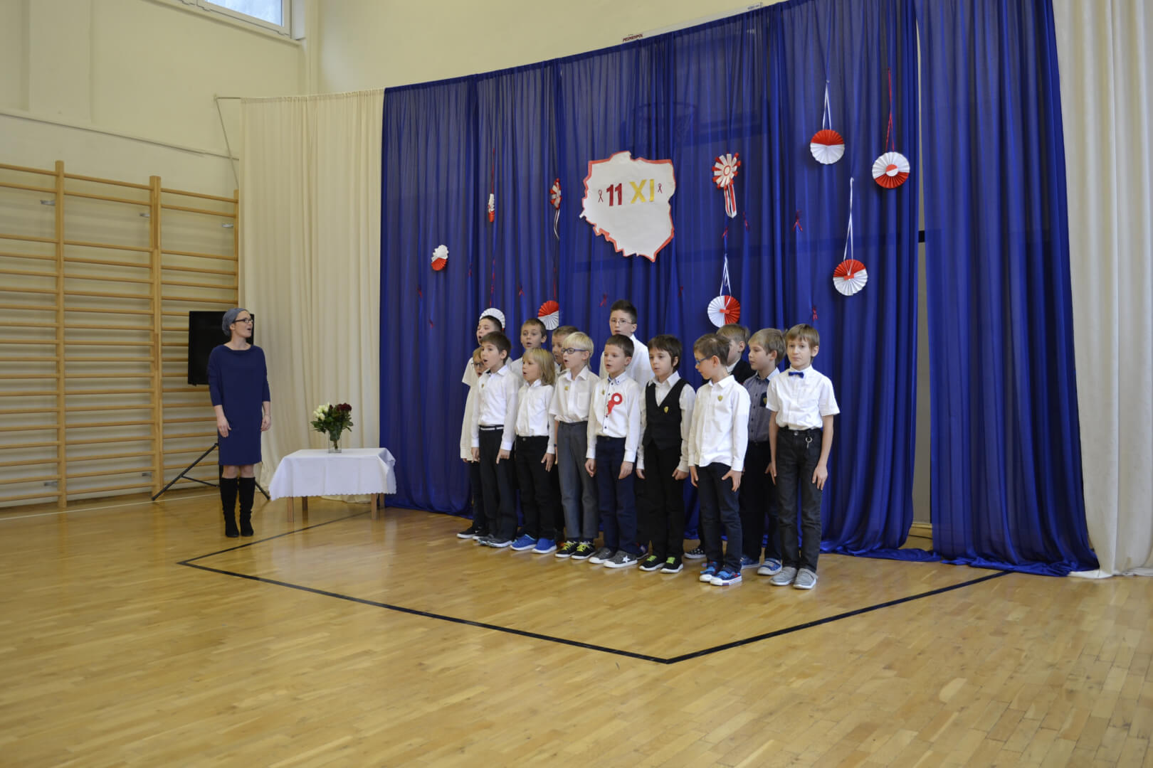 Uczniowie naszej szkoły uczcili Święto Odzyskania Niepodległości konkursem pieśni patriotycznych. Pierwsze miejsce zajęli uczniowie klasy 5 i 6, drugie klasa 3, a trzecie klasy: 1, 4 i 7. Uroczysty apel rozpoczęła grupa uczniów pod kierunkiem nauczyciela historii, mgr Marka Wilczka, która przedstawiła krótki rys historyczny. W części artystycznej uczniowie zaprezentowali tańce polskie oraz taniec z flagą.