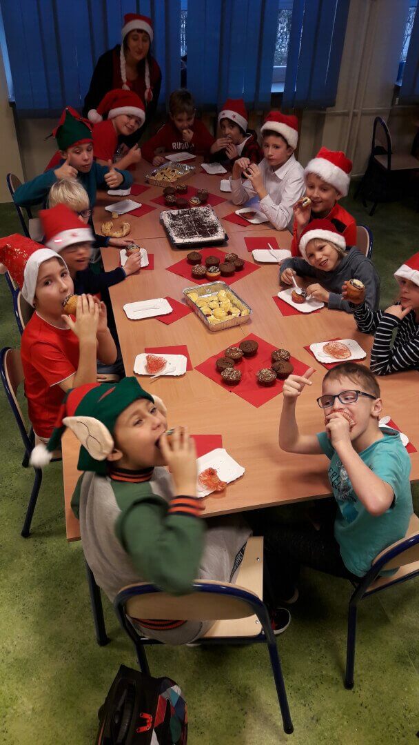 i poszedł do innych dzieci! A my zajęliśmy się pałaszowaniem pyszności przygotowanych przez nasze mamy, później obejrzeliśmy mikołajkowy film i rozwiązaliśmy kilka łatwych zagadek matematycznych (mogliśmy sobie dzięki temu wylosować niespodziankę:)