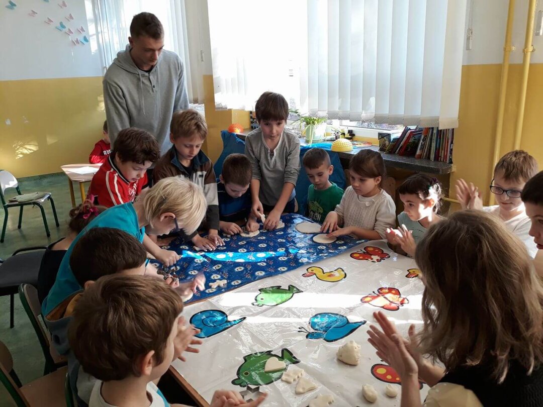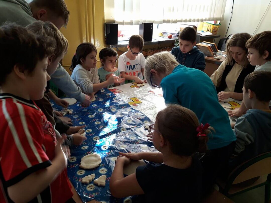 Pewnego popołudnia świetlica zajęła się masową produkcją „pierniczków” z masy solnej. Chętnych do pracy nie brakowało. Wygląda na to, że nasze świetlicowe dzieciaki polubiły tę przedświąteczną zabawę. Zrobione przez nas „pierniczki” wyglądały tak apetycznie, że aż chciało się je zjeść. Jednak zamiast tego będzie można je kupić na naszym świątecznym kiermaszu 🙂