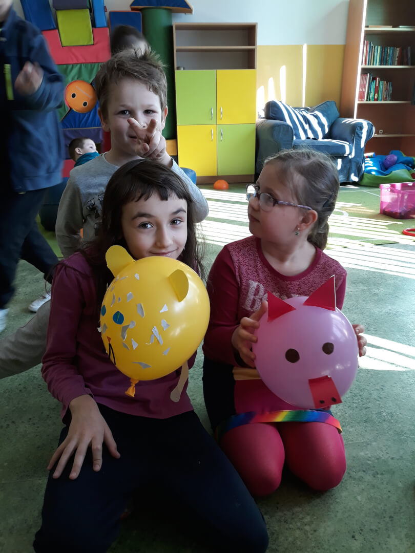 Jakie są zwierzątka, które znamy? Miłe i do przytulania! Można je głaskać. Zwykle mają okrągły brzuszek. Dzieci na pytanie -„z czego możemy wykonać nasze zwierzątka?” zaskoczyły nas odpowiedzią -„z balonów”!