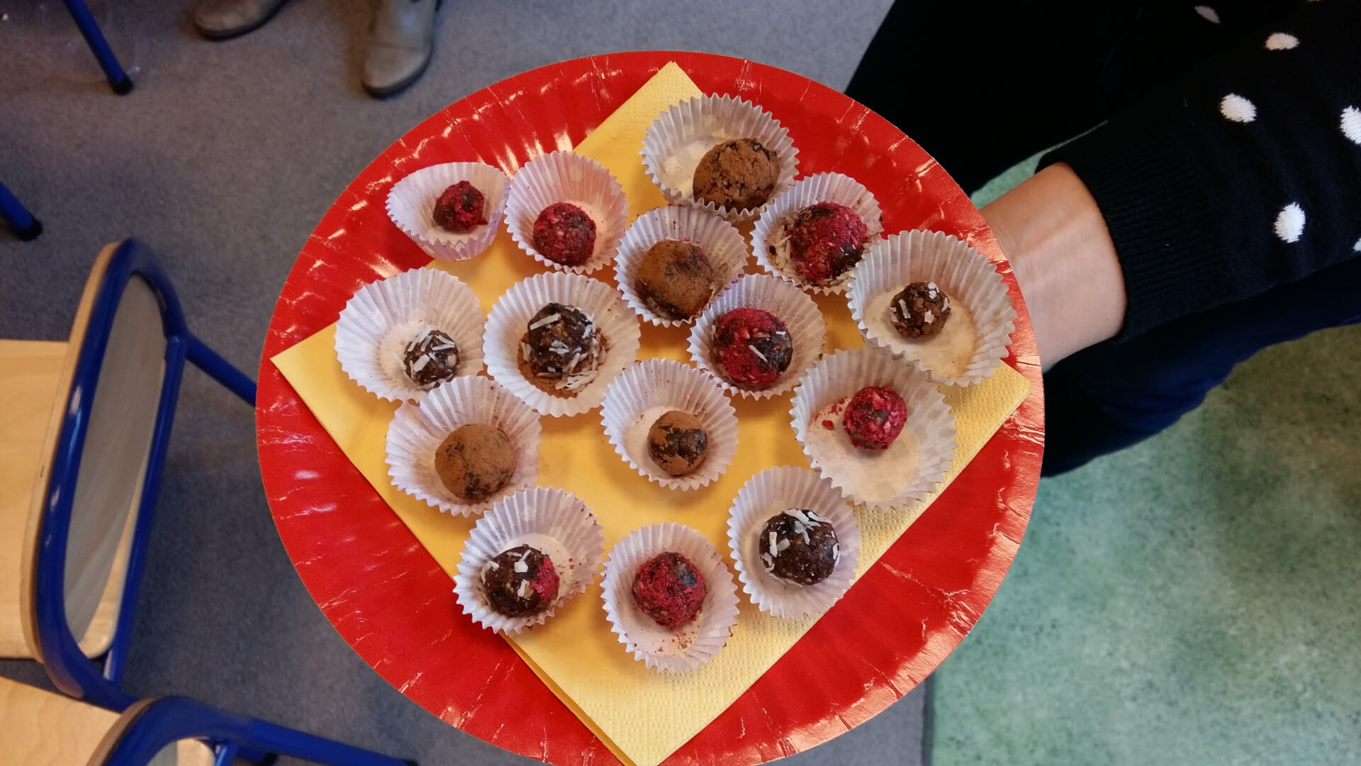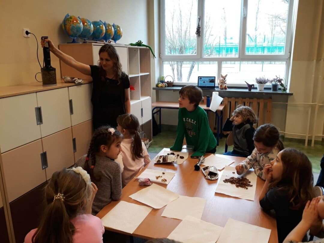 Pod koniec zajęć, uczniowie sami zrobili zdrowy deser. Były w nim daktyle, suszone śliwki, kokos i orzechy z różnych stron świata 🙂