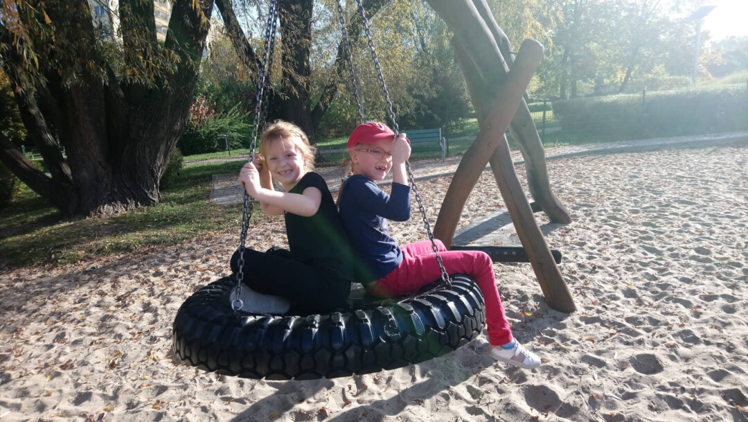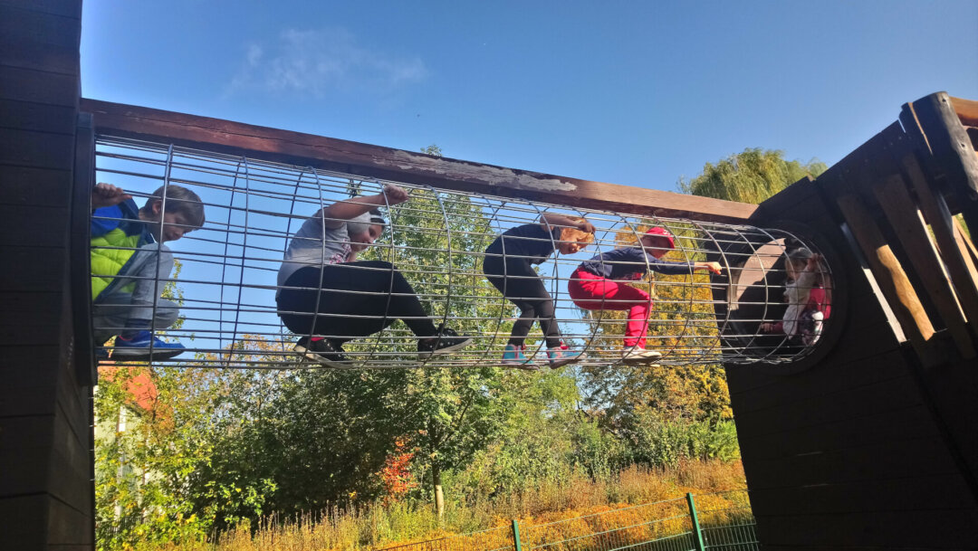 Korzystając z pięknej jesiennej pogody, dzieci z klas 1b i 2b wybrały na wspólny rajd do parku Zaczarowana Dorożka. Zabawom i harcom nie było końca.