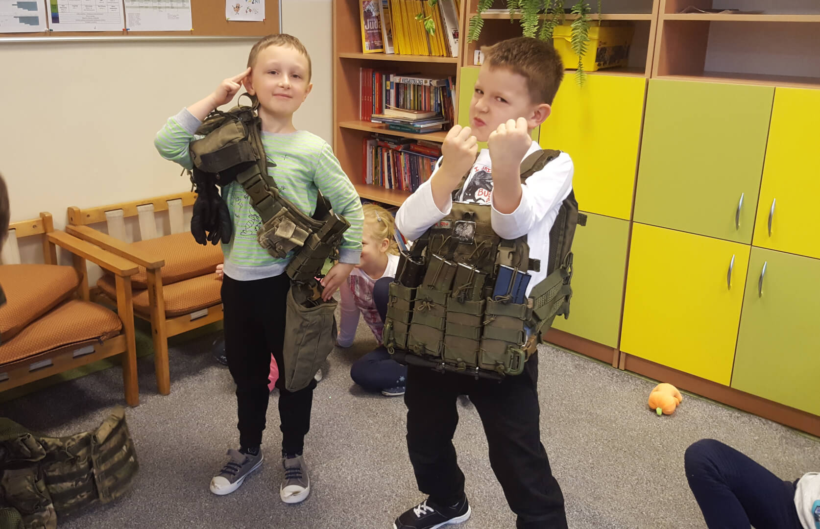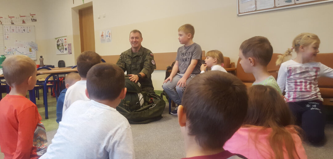 6 listopada odwiedził nas specjalny gość: Pan Rafał żołnierz 6 Brygady Powietrznodesantowej i najważniejsze tatuś  Aleksa z 1a. Pan Rafał przygotował zajęcia pełne wrażeń. Mogliśmy dowiedzieć się nieco o pracy żołnierzy ale również przymierzyć hełm, maskę przeciwgazową, jaki i zobaczyć najprawdziwszy spadochron. Dziękujemy!