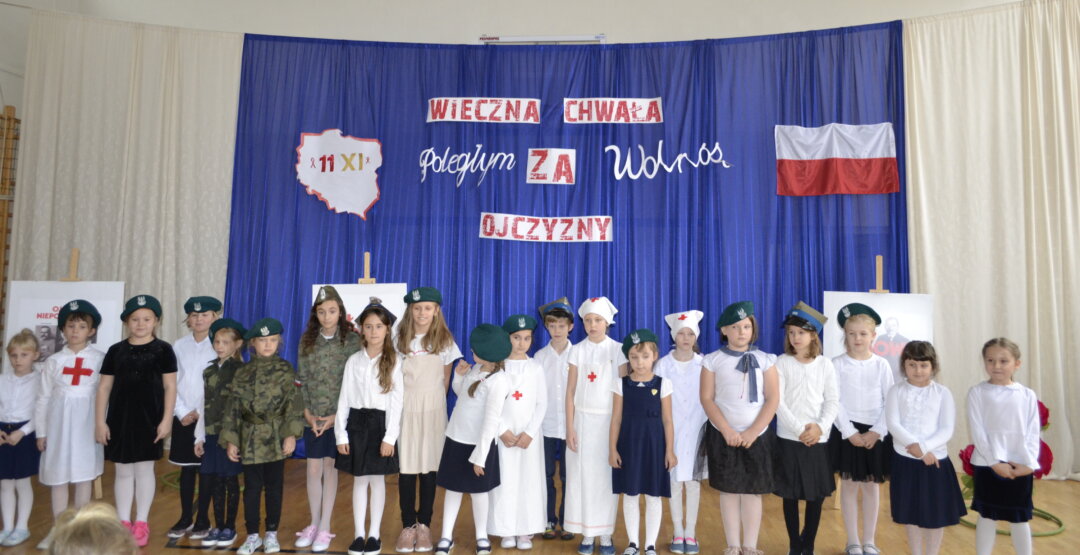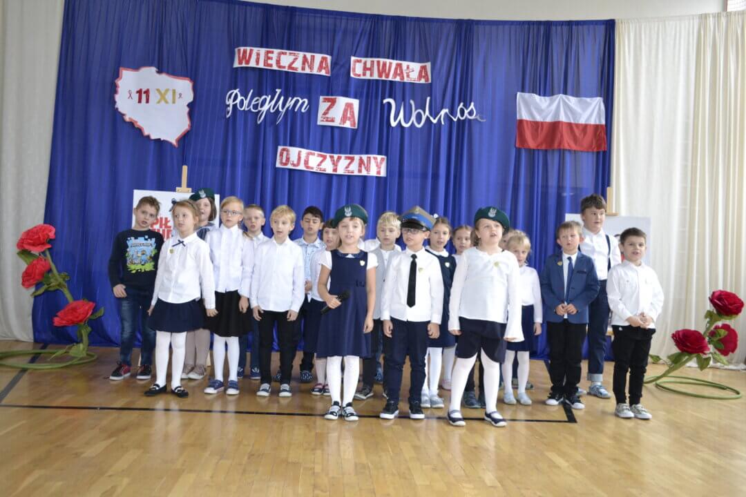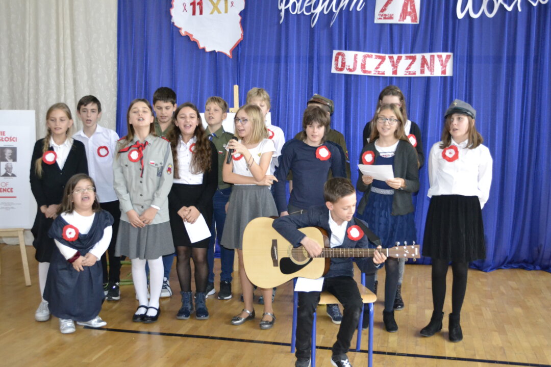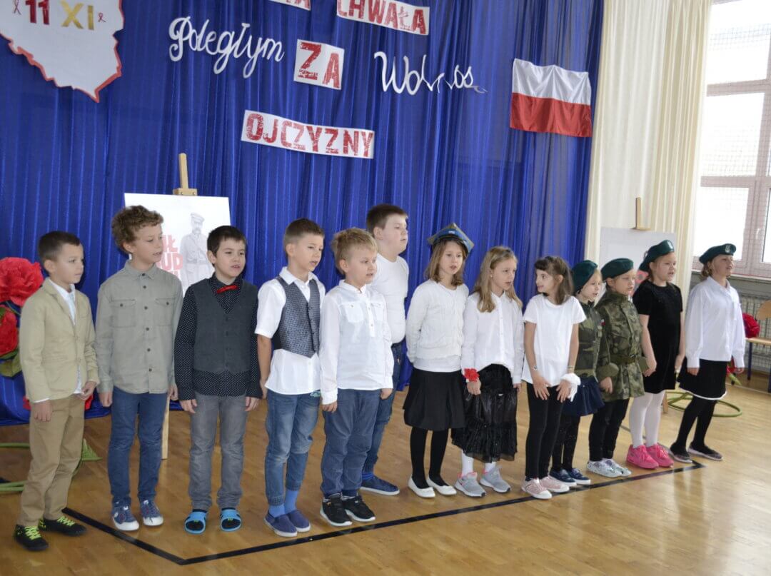 12 listopada na uroczystym apelu uczniowie SP 128 uczcili święto Odzyskania Niepodległości przygotowując i prezentując wybraną pieśń o charakterze patriotycznym.