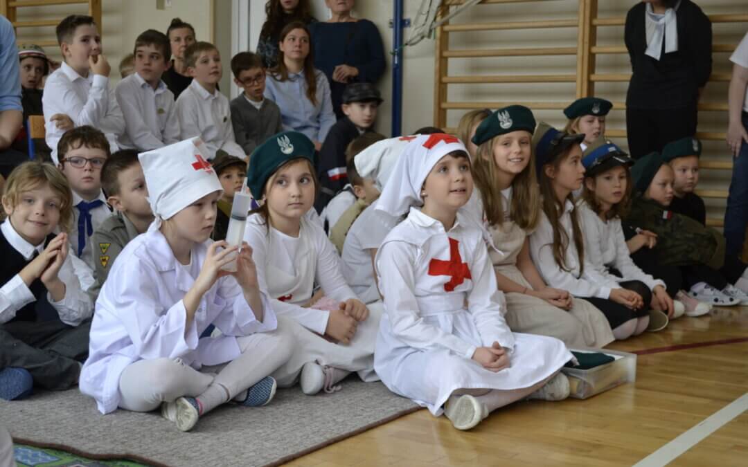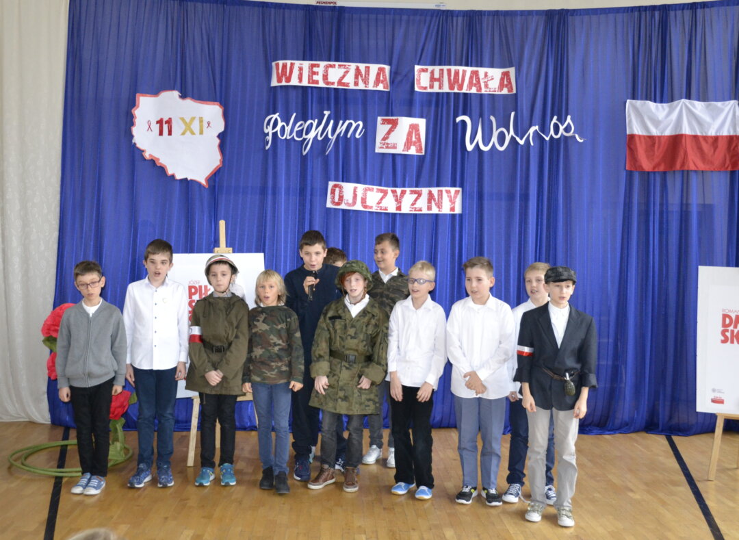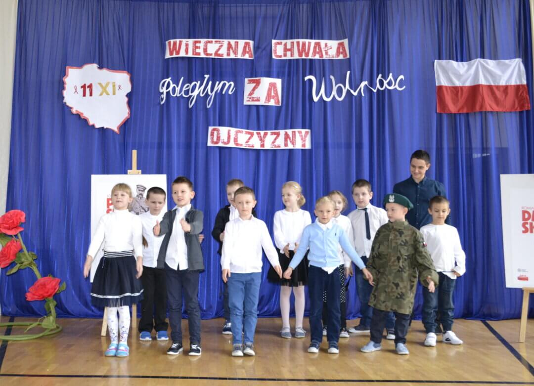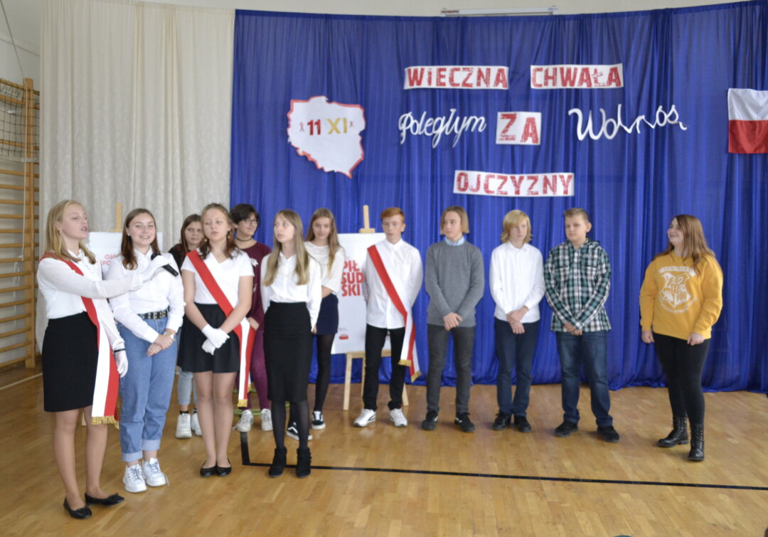 12 listopada na uroczystym apelu uczniowie SP 128 uczcili święto Odzyskania Niepodległości przygotowując i prezentując wybraną pieśń o charakterze patriotycznym.