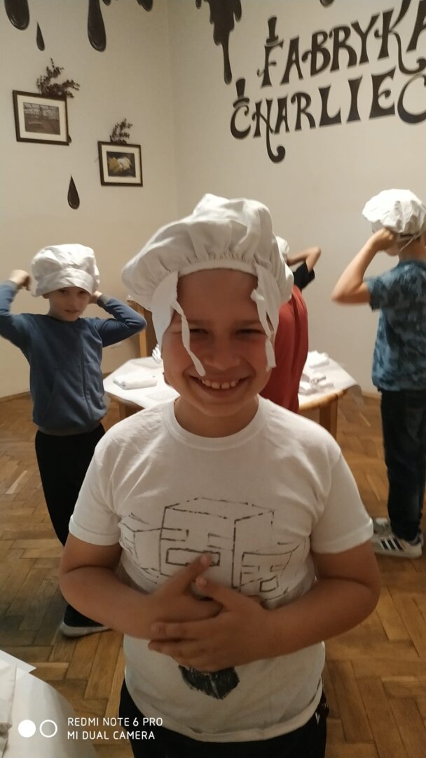 Klasa 2a wybrała się na wycieczkę do magicznego miejsca w Krakowie, gdzie dzieją się rzeczy niesamowite. Fabryka Charliego, to miejsce, w którym można dowiedzieć się wszystkiego, na temat tego, co uwielbiają mali i duzi, młodsi i starsi….Chodzi oczywiście o CZEKOLADĘ!!! Uczniowie mogli poznać czekoladową mapę świata. Największa zabawa, a zarazem wyzwanie czekało na koniec, kiedy to dzieci mogły same zrobić przeróżne słodkości. Nasi uczniowie dzielnie przystąpili do pracy. Było wesoło, kreatywnie i przede wszystkim słodko! Każdy z nich mógł posmakować prawdziwej czekolady o różnych smakach. Klasa 2a spisała się na medal! Powstały przepyszne własnoręcznie robione i zdobione czekolady! A jak smakowały! 🙂 Warsztaty czekoladowe, czyli nauka przez zabawę były wspaniałe.