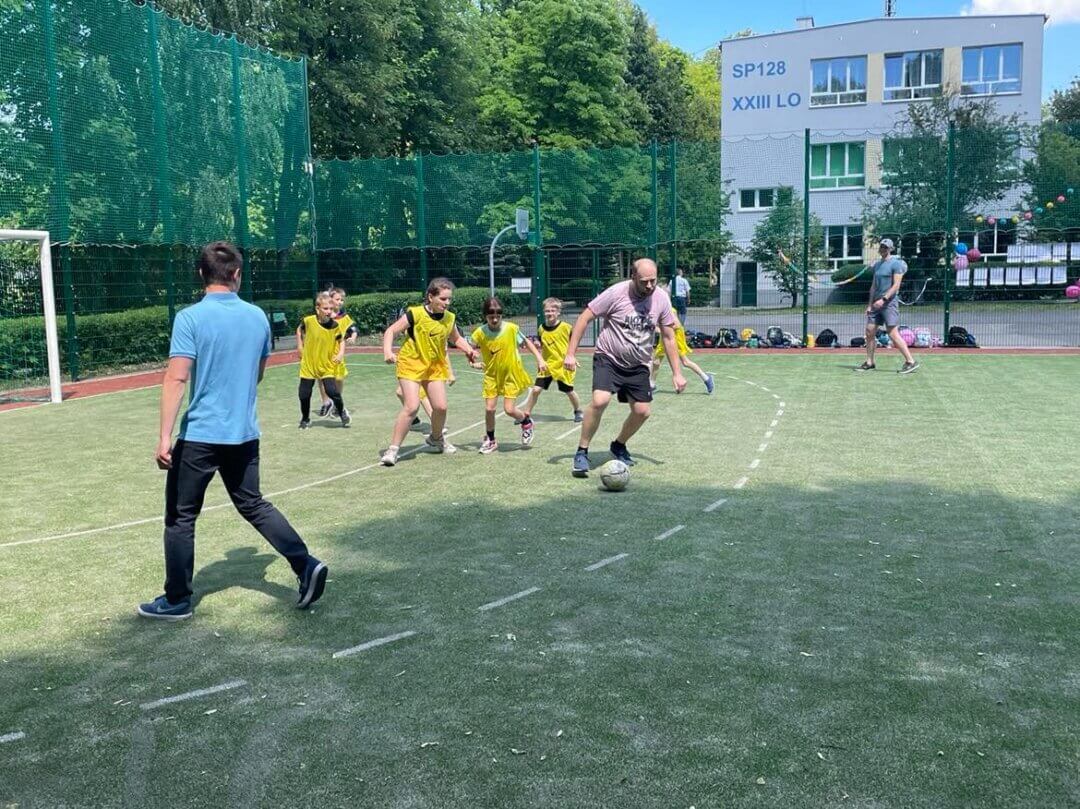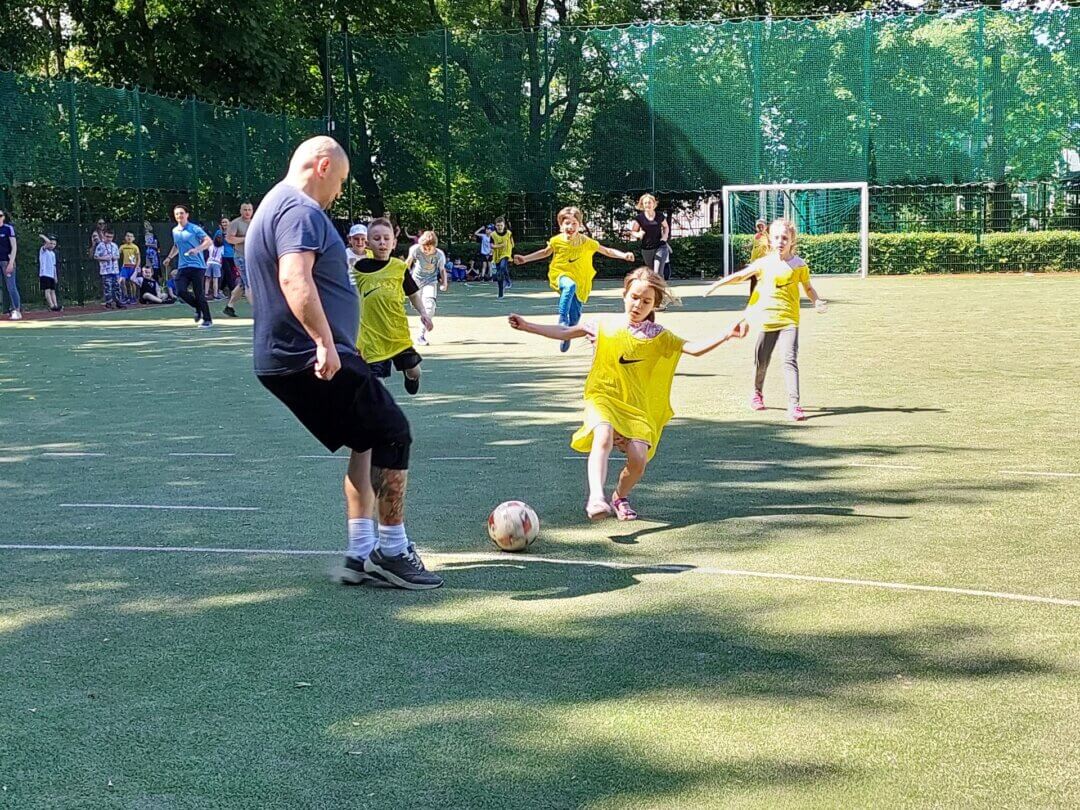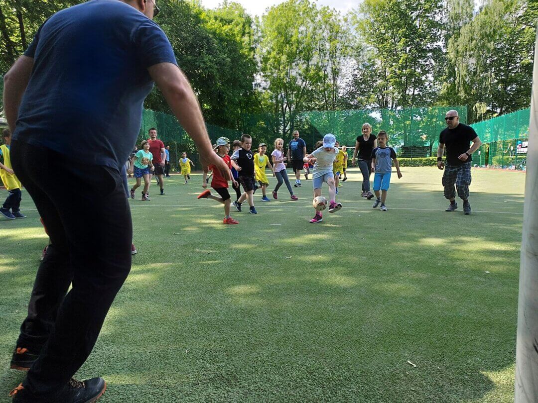 W tym roku szkolnym Dzień Dziecka na świetlicy spędziliśmy na sportowo. W zdrowym ciele, zdrowy duch! :). Na naszych wychowanków czekało wiele konkurencji sportowych, m. in. bieg na czas, rzut piłką lekarską, rzut woreczkami do celu, zwis na drążku i skok w dal. Wszyscy świetnie sobie radzili z przygotowanymi przez wychowawców wyzwaniami. W oddali słuchać było radość, śmiech, doping kolegów i koleżanek podczas zmagać sportowych. Zasada fair play również była respektowana przez naszych świetliczan. Brawo!. Najwięcej emocji przyniósł mecz piłki nożnej Rodzice vs. Dzieci. Wspaniali rodzice naszych świetliczan nie zawiedli i pokazali wielką klasę w grze, wspierając swoje dzieci i nie tylko. Mogliśmy zobaczyć super zabawę i atmosferę w obu drużynach. WIELKIE BRAWA DLA WAS!! DZIĘKUJEMY, ŻE PO RAZ KOLEJNY MOGLIŚMY NA WAS LICZYĆ!! GRATULACJĘ DLA WSZYTKICH NASZYCH MAŁYCH ZAWODNIKÓW ZA DZIELNĄ WALKĘ DO KOŃCA!.
