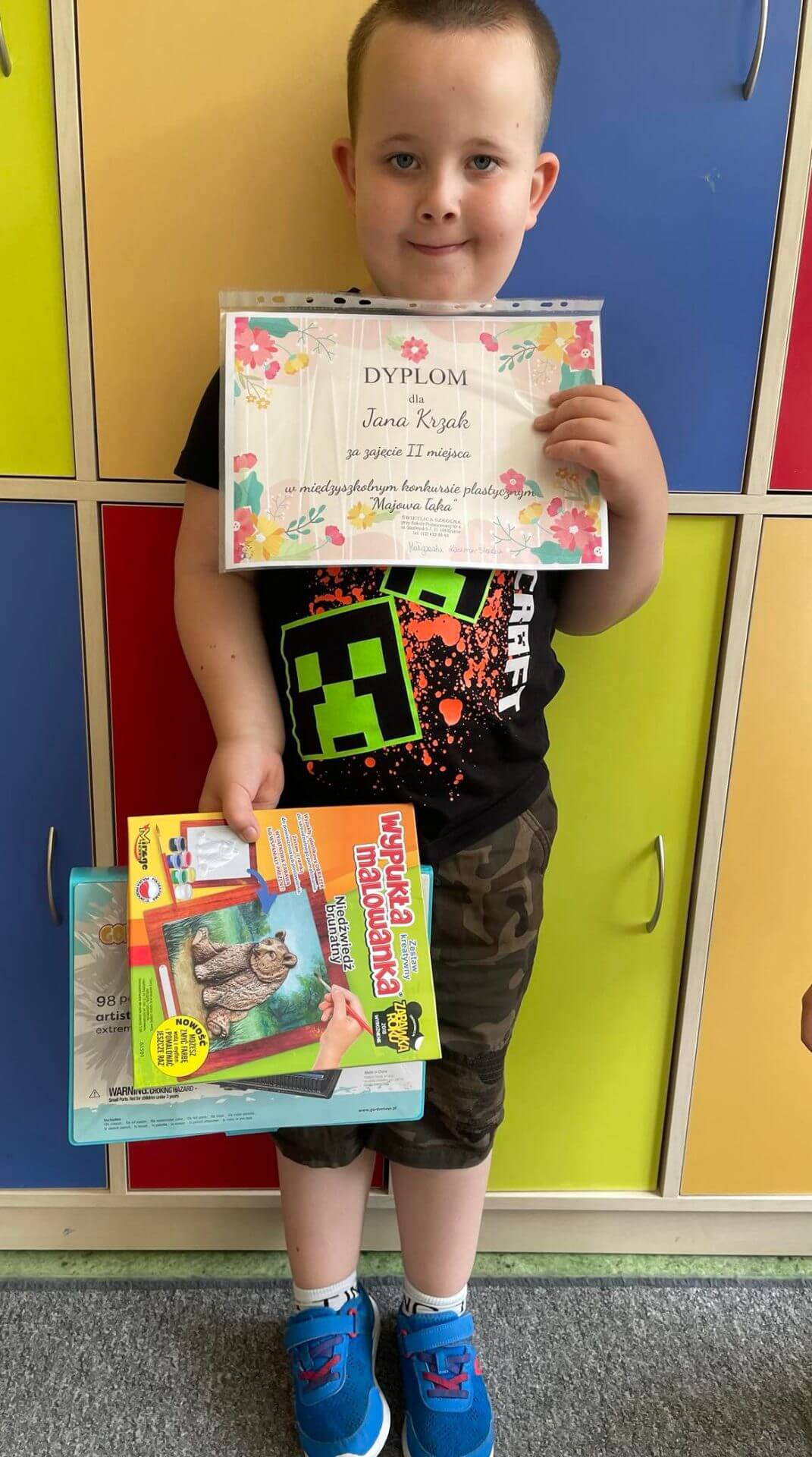 Miło jest nam poinformować, że uczeń klasy 1a – Jan Krzak zajął II miejsce w Międzyszkolnym Konkursie Plastycznym organizowanym przez Szkołę nr 4 (świetlicę) w Krakowie, pt.,,Majowa Łąka”.