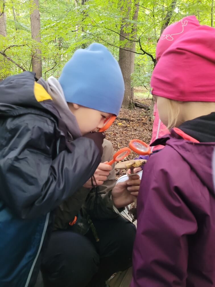 Poznawanie tajników życia dzików, podglądanie miejsc ich bytowania takiego jak buchtowisko czy leśnego SPA dzików. To wszystko nie jest już nam obce dzięki żywej lekcji przyrody i pasji do lasu, którą zaszczepiły nam Panie z Fundacji. (J. Porębska)