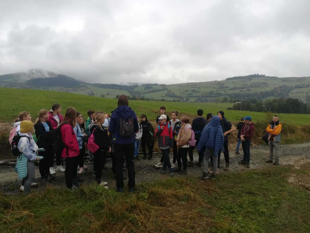 Klasa 8a zwiedza Gorce na trzydniowej wycieczce, stacjonując w Porębie Wielkiej.