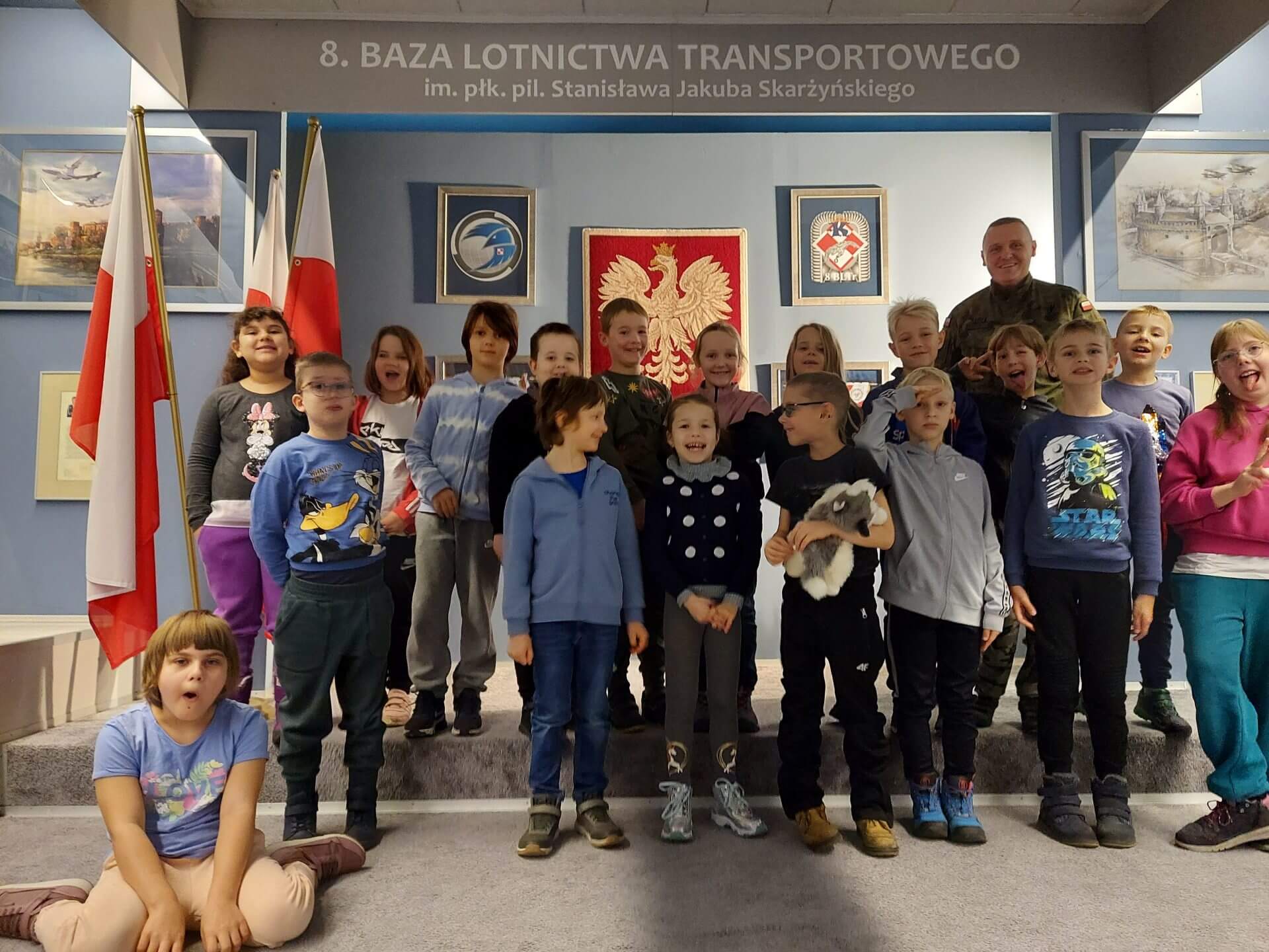 2a miała niezwykłą możliwość zwiedzenia 8. Bazy Lotnictwa Transportowego imienia naszego patrona. Dzięki tatusiowi jednej z naszych uczennic mogliśmy uczestniczyć w tej pełnej wrażeń wycieczce. Pierwszą atrakcją była podróż pociągiem – dla niektórych pierwsza w życiu! Później Tata Żołnierz ( 🙂 ) zaprowadził nas do żołnierskiego klubu, gdzie dowiedzieliśmy się ciekawych wiadomości o lotnictwie transportowym, samolotach i pilotach. W Izbie Pamięci na własne oczy mogliśmy zobaczyć najprawdziwsze pamiątki po Stanisławie Skarżyńskim, jedną z nich był mundur! Widzieliśmy start i lądowanie samolotów, wojskową i lotniskową straż pożarną. Nasz kolega spróbował nawet ubrać się w cały strażacki strój (musiał zmieścić się w 30 sekundach!) – nie było łatwo, ani wygodnie. Mogliśmy też poczuć się jak prawdziwi piloci – siedzieliśmy w kokpicie samolotu CASA C295. Wycieczka była niesamowita! Serdecznie dziękujemy tatusiowi Ali.
