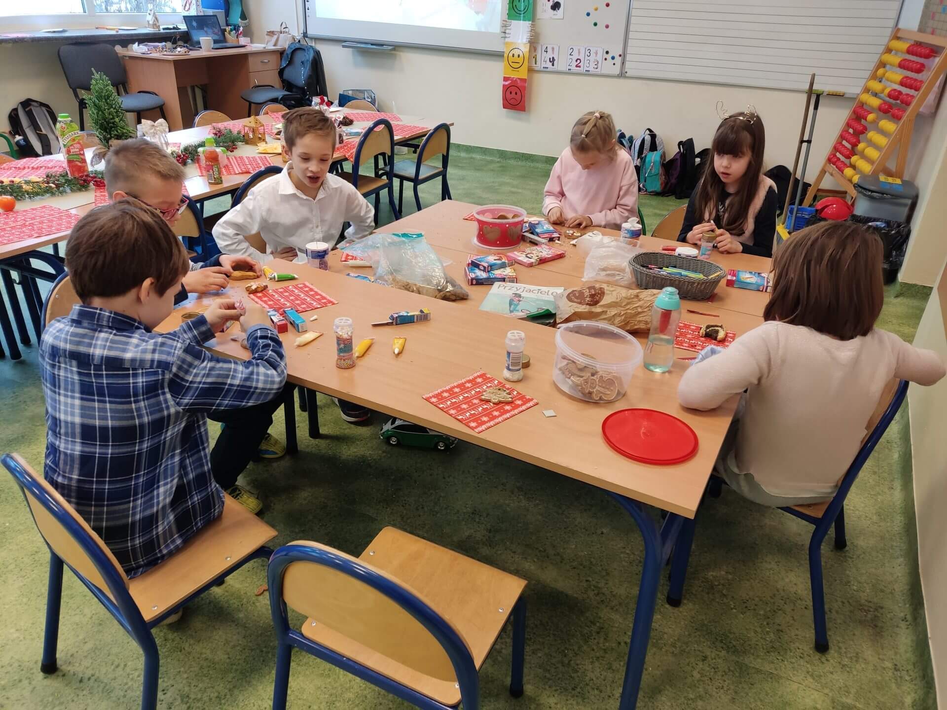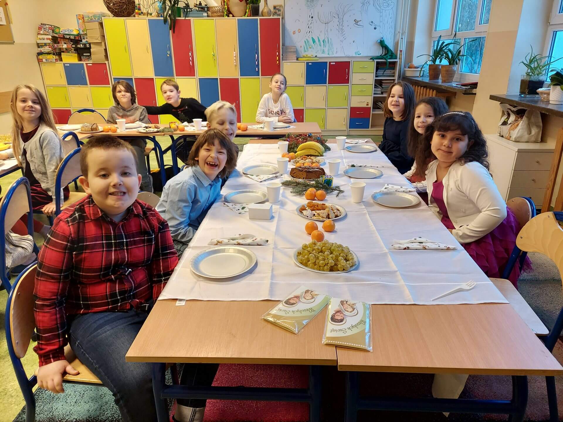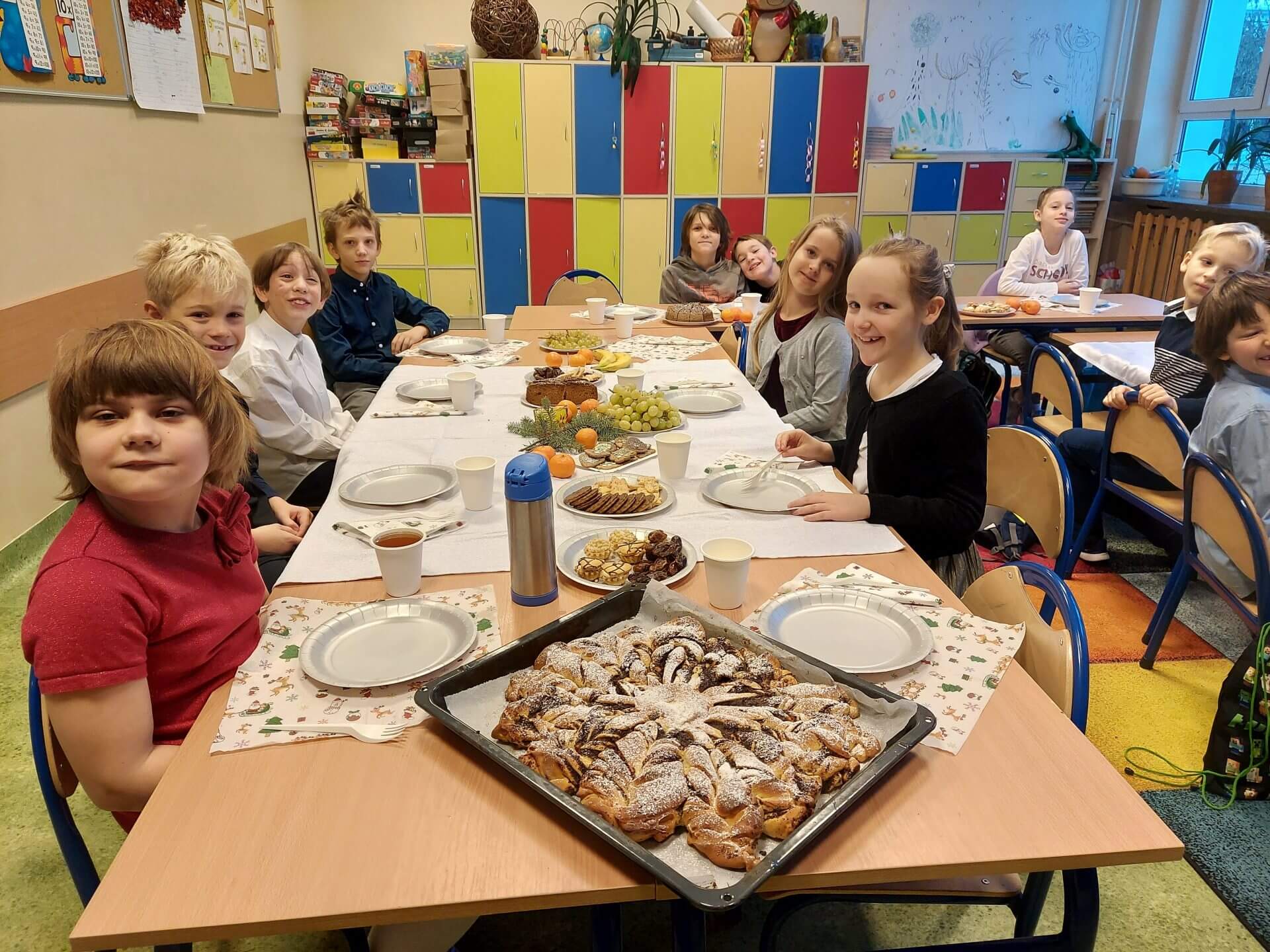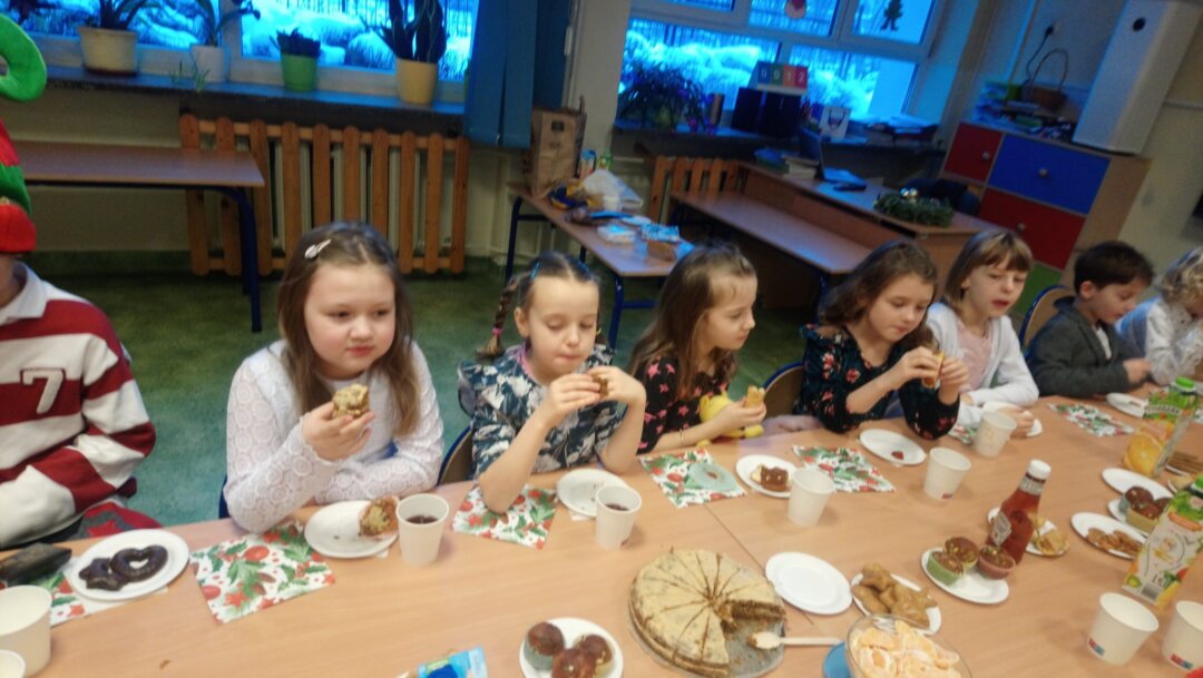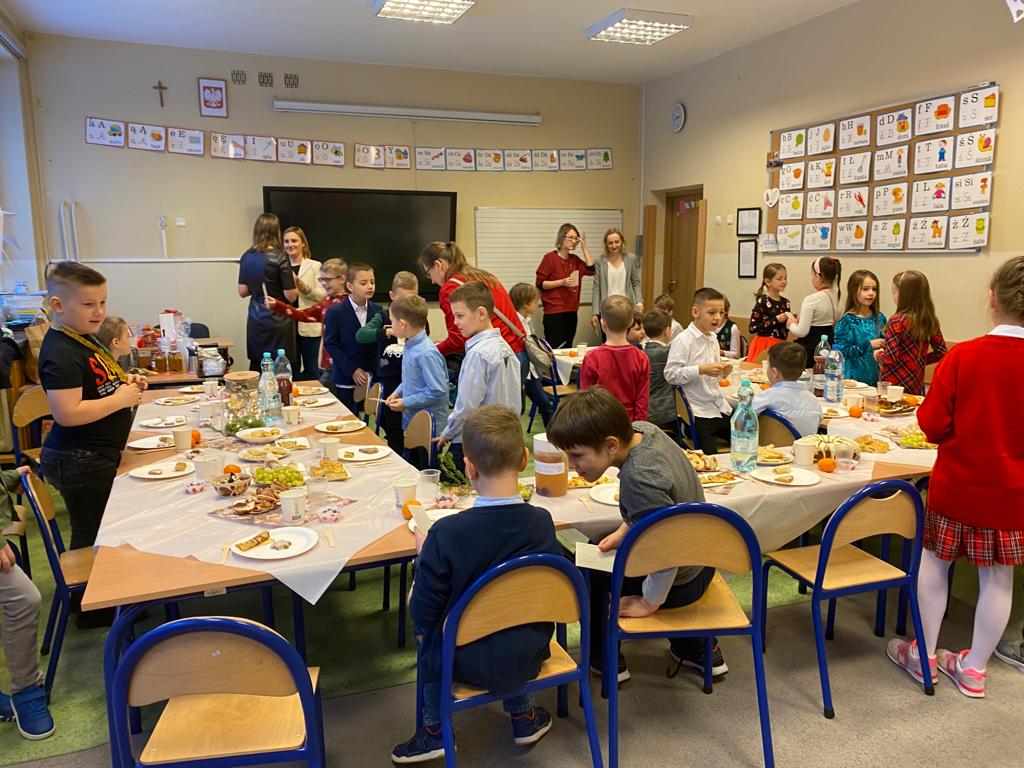 22.12 w naszej szkole odbyły się klasowe spotkania świąteczne. Dzięki pomocy kochanych rodziców mogliśmy cieszyć się pięknie przystrojonymi stołami, na których zagościły cudowne pyszności. Wszystkie klasy spotkały się w sowim gronie by złożyć sobie najserdeczniejsze życzenia z okazji zbliżających się Świąt i Nowego 2023 Roku. Było bardzo uroczyście i miło. Po spotkaniach w klasach udaliśmy się na apel, który swym przedstawieniem uświetniły klasy 3b i 5a. Jasełka w przygotowaniu, których pomagały panie Elżbieta Mazurkiewicz, Beata Kucharska i Ewa Mol – były po prostu wspaniale. Uczniowie wykazali się prawdziwym talentem aktorski i wokalnym. Brawa dla nich.