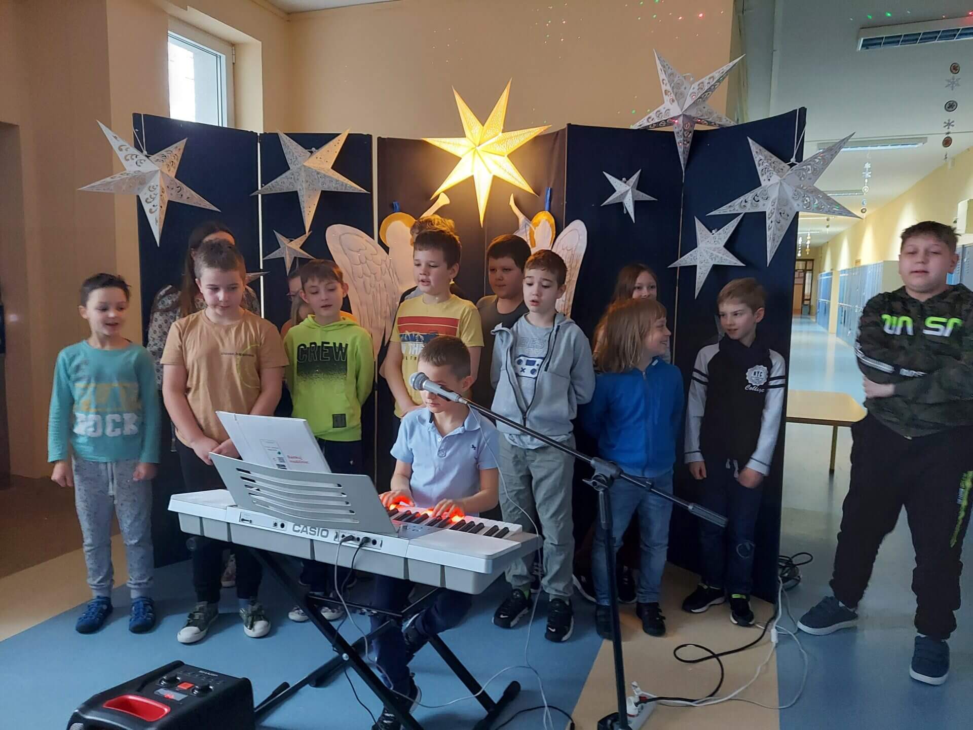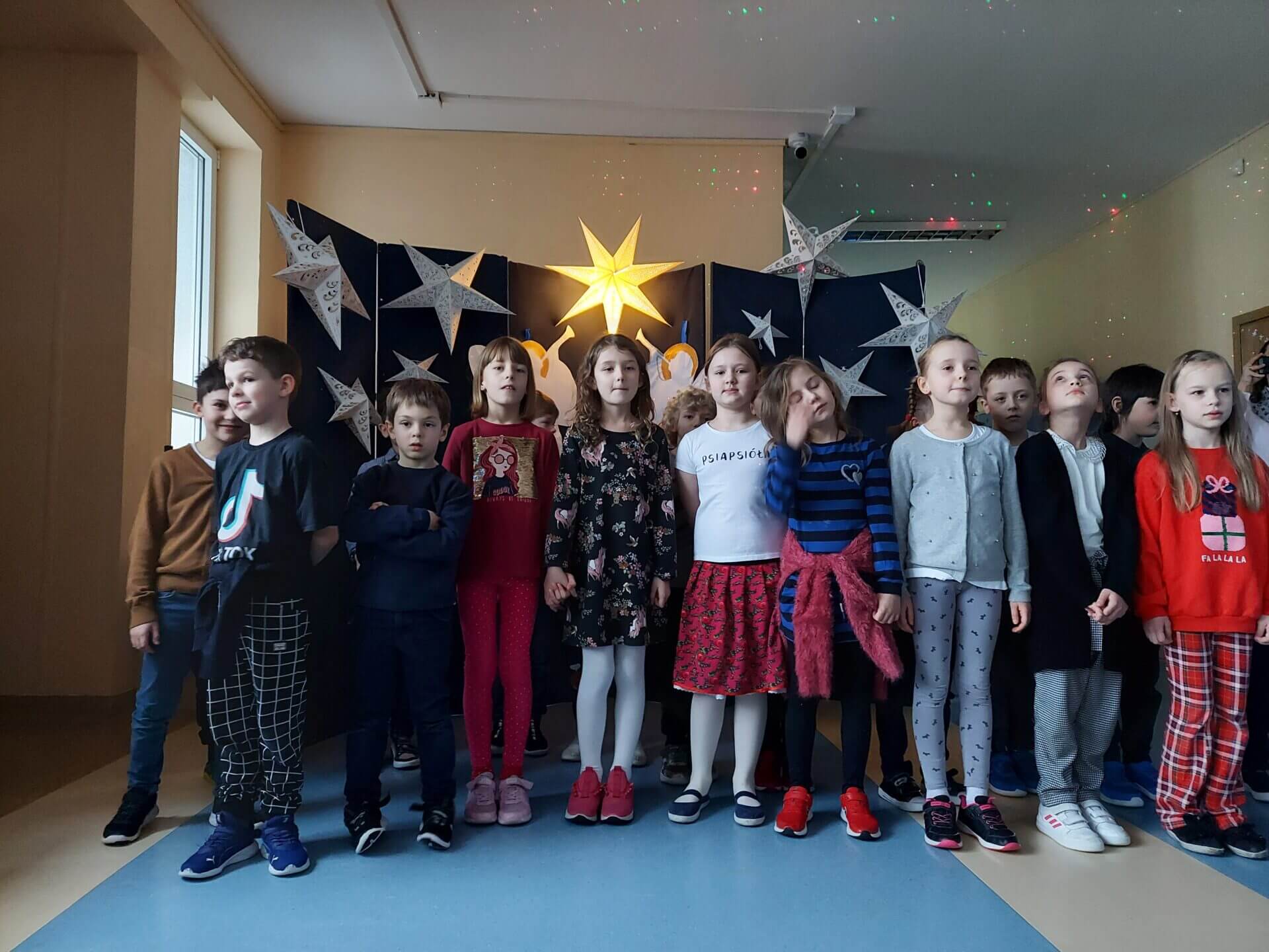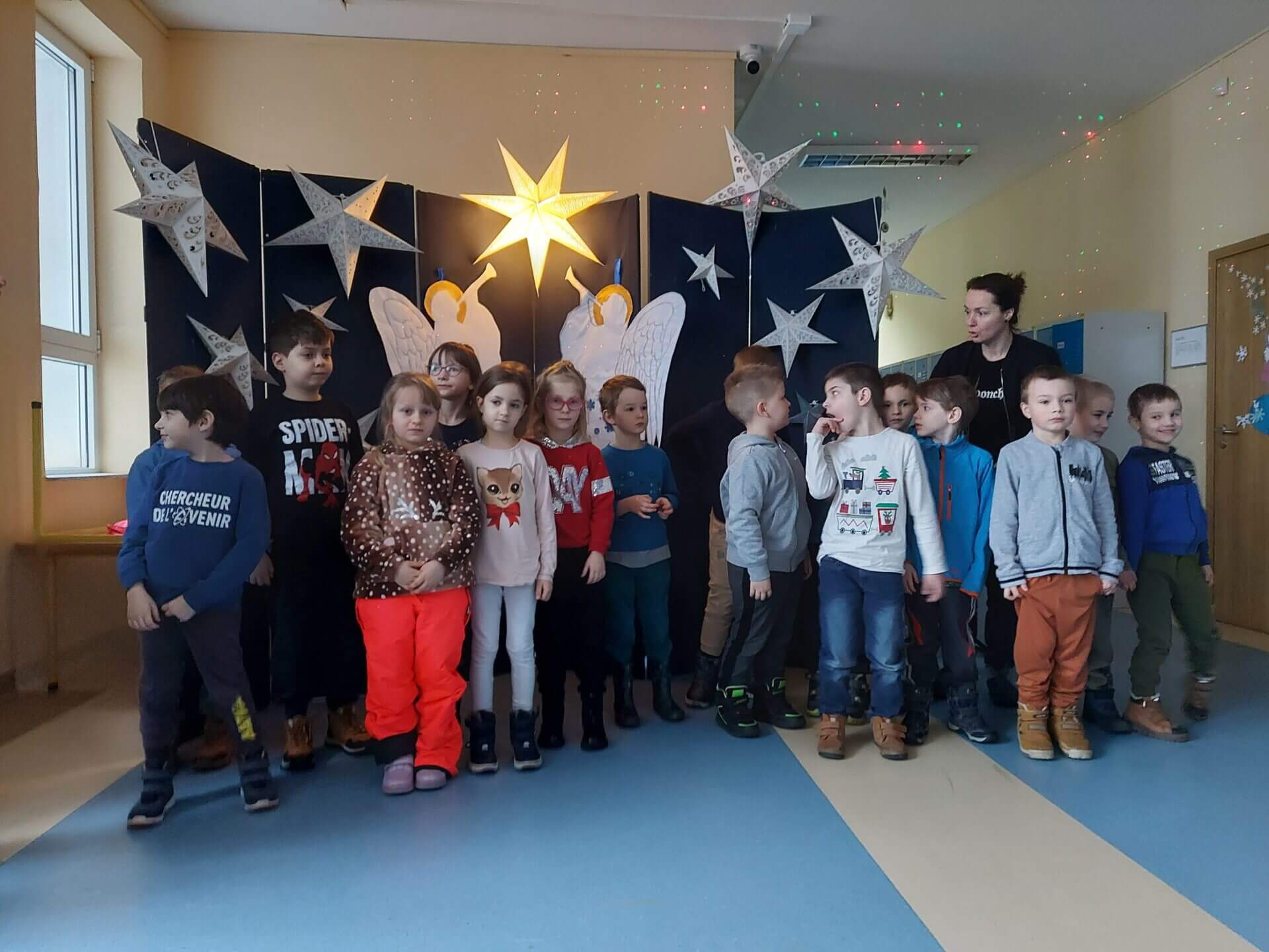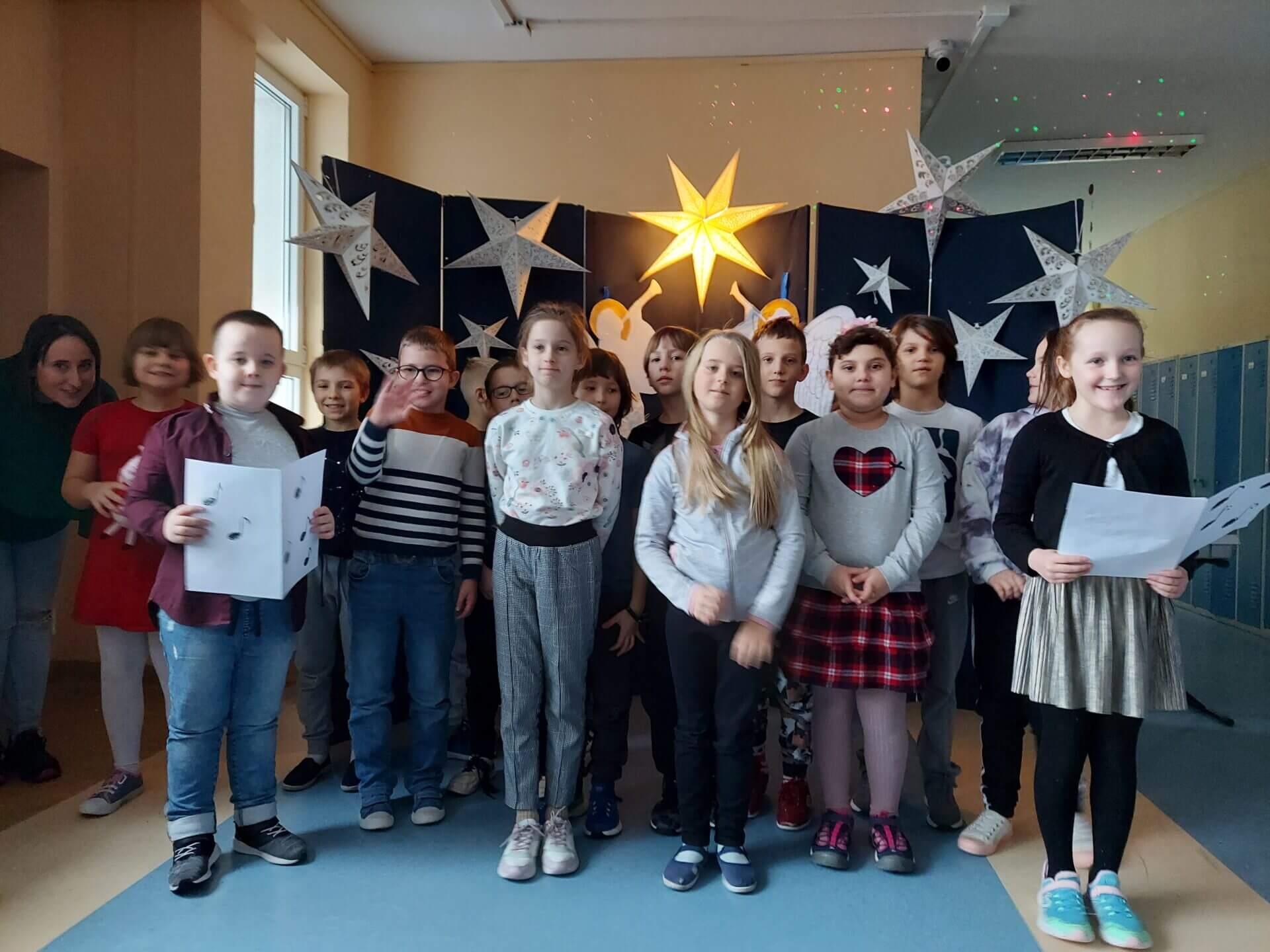 20 stycznia w naszej szkole odbyło się spotkanie z kolędą i piosenką świąteczną. Swoją obecnością zaszczycili nas goście z Przedszkola nr 20 i Przedszkola nr 14. Uczniowie, uczennice i przedszkolaki przepięknie zaśpiewali kolędy i świąteczne piosenki. Było gwarno i radośnie. Wszystkie prezentacje zasłużyły na gromkie brawa!