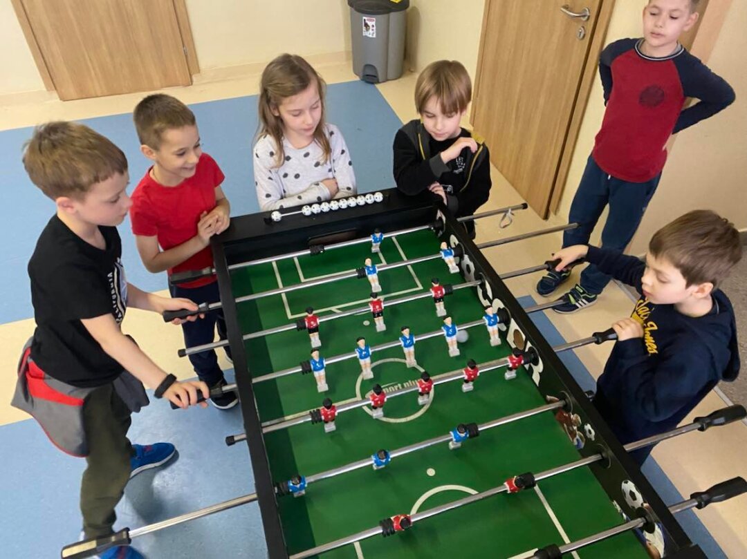 Szkolny turniej gry w piłkarzyki w świetlicy