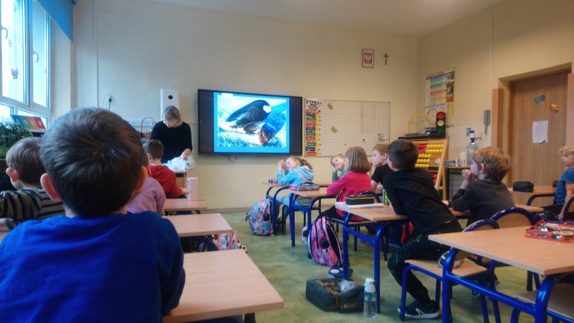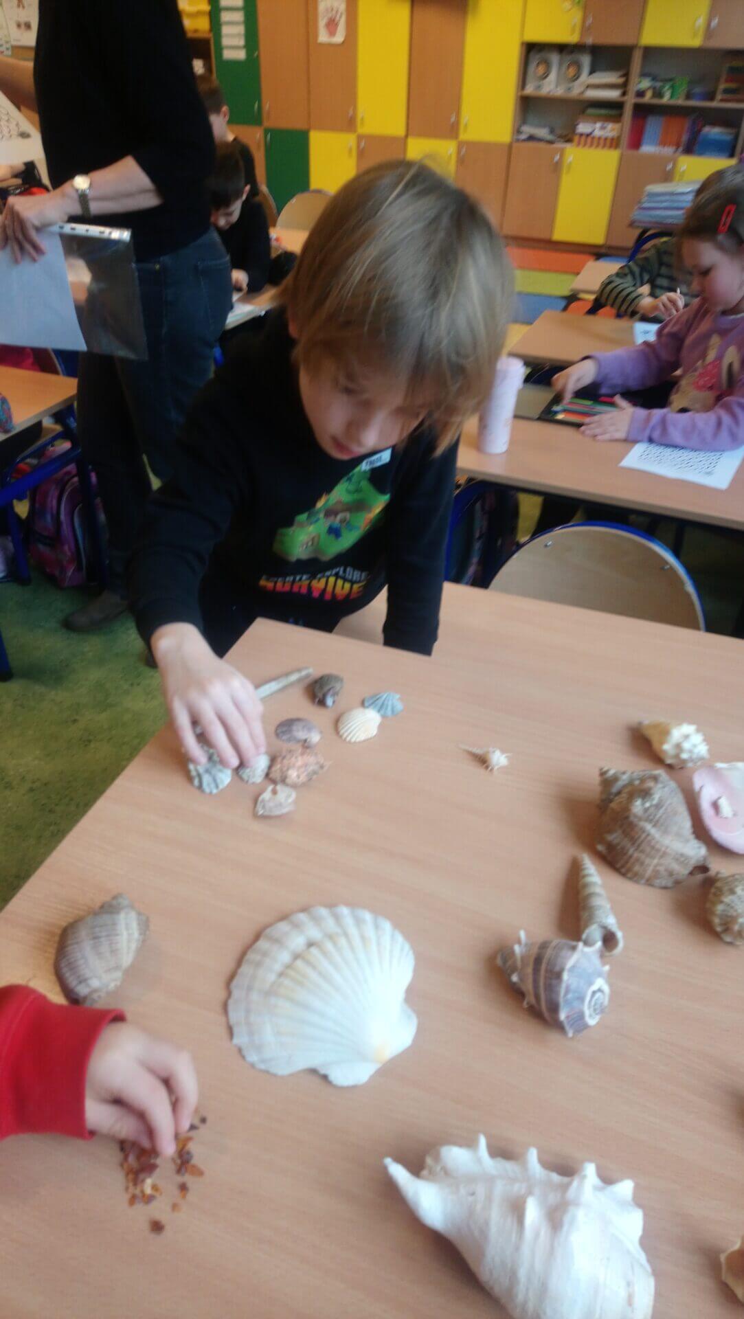 Klasa 1b w ramach cyklicznych warsztatów Świat w Kalejdoskopie uczestniczyła w zajęciach pt. Morza i Oceany. Dzieci miały okazję zobaczyć ile miejsca na Ziemi zajmuje woda. Dowiedziały się co w nich żyje i dlaczego w niektórych wodach nie ma życia. Największe wrażenie zrobiła Rafa Koralowa.