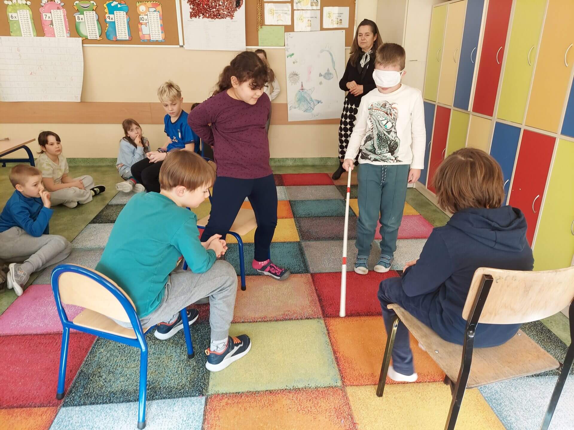 Klasa 2a uczestniczyła w niezwykle ciekawych i ważnych warsztatach z cyklu profilaktyczno-wychowawczego „Podaruj chwilę”. Spotkanie „Jasno i ciemno” to zajęcia aktywizujące zmysł wzroku i przybliżające trudności osób z niedowidzeniem i niewidzeniem. Pani prowadząca w przejmujący sposób rozmawiała z nami o trudach bycia osobą niedowidzącą lub niewidzącą, uświadomiła nam, że wszystkim może zdarzyć się taka sytuacja. Uwrażliwiła nas na potrzeby osób z problemami dotyczącymi wzroku. Było to wspaniałe, mądre spotkanie.