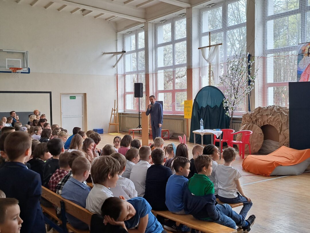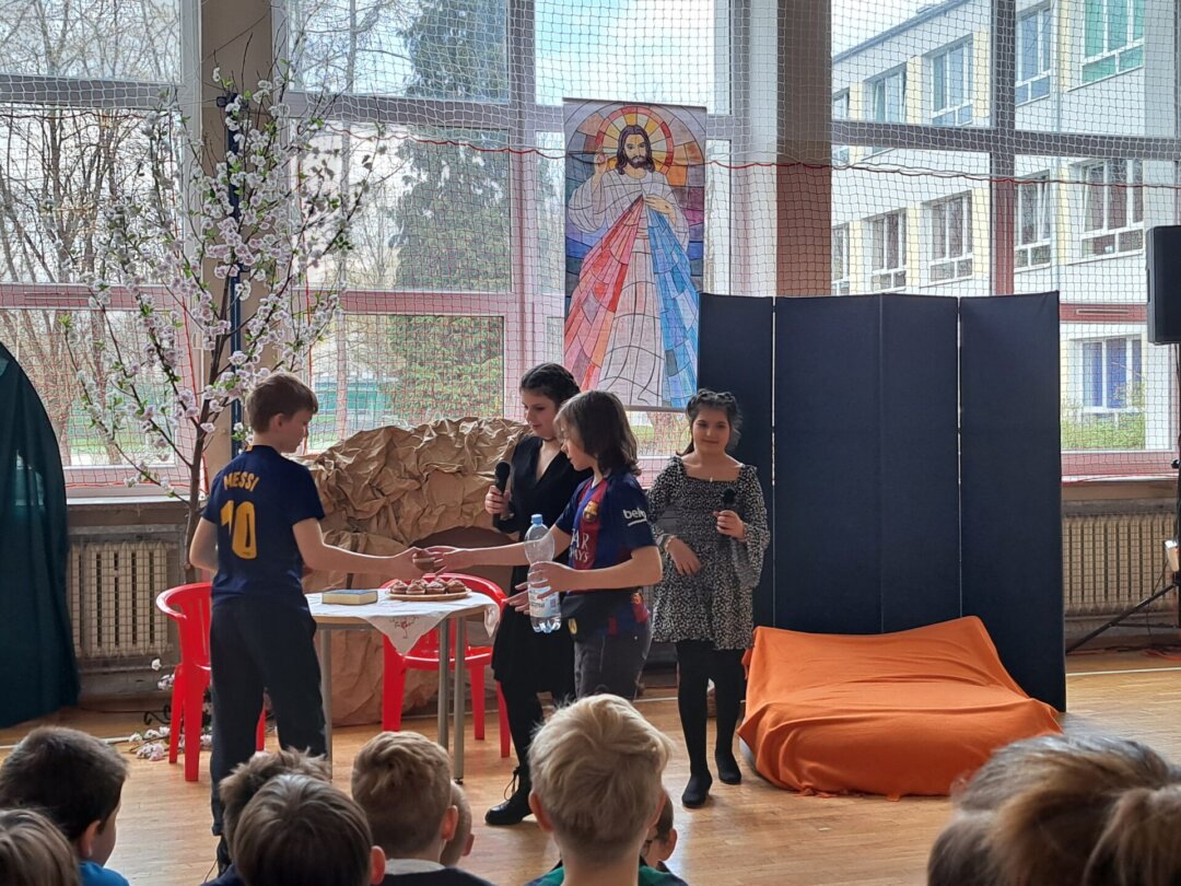 W środę 4 kwietnia uczniowie naszej szkoły wzięli udział w apelu z okazji Świąt Wielkanocnych. Dzieci i młodzież wystawiła swe przedstawienie. Odegrane scenki pozwoliły zwrócić myśl ku temu, co najistotniejsze w czasie świąt. Serdecznie dziękujemy wszystkim występującym uczniom za ich zaangażowanie się w przygotowanie tej uroczystości.