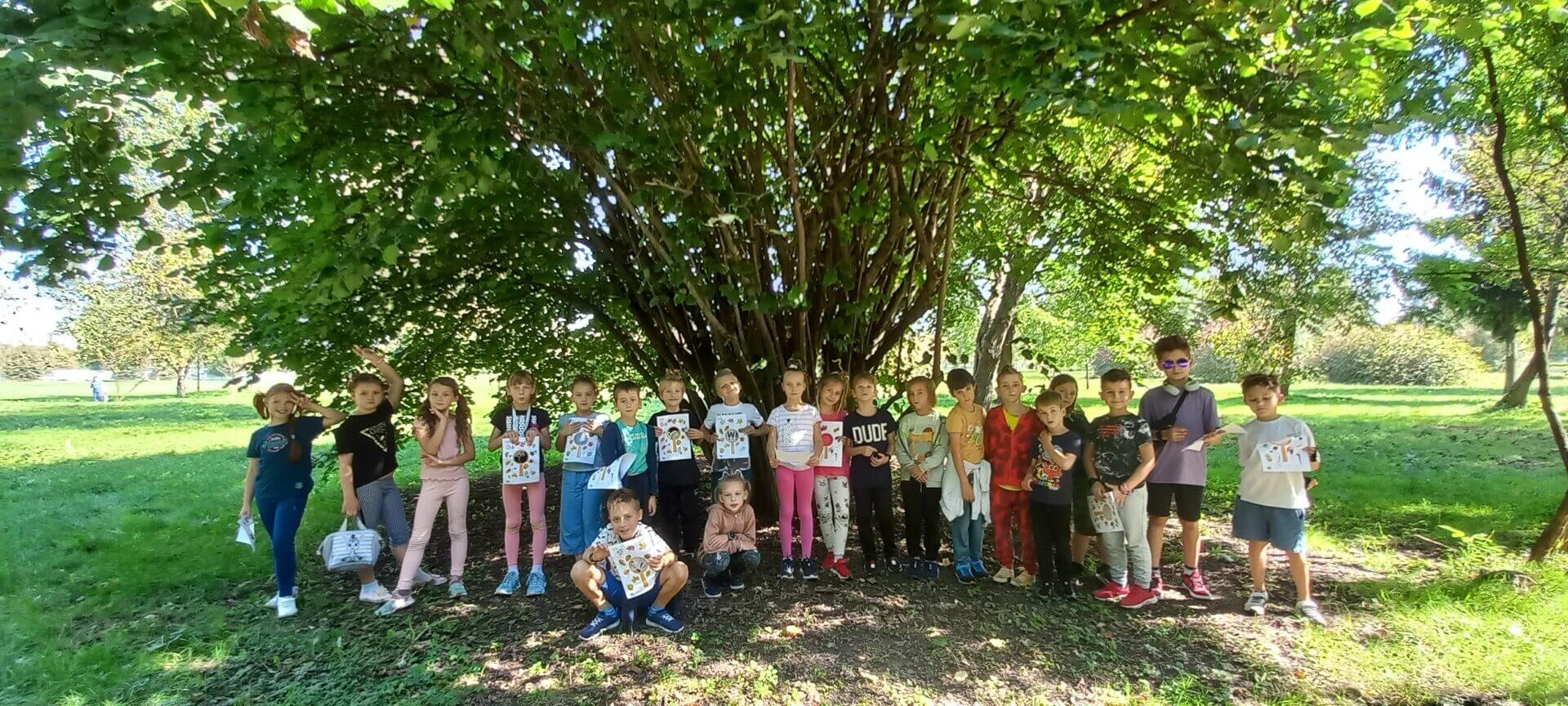 Klasa 2b realizując projekt ” Klasa w terenie” wybrała się do parku w poszukiwaniu wybranych roślin, liści i owoców krzewów. Okazało się, że całkiem niedaleko naszej szkoły rośnie wiele gatunków drzew i krzewów. Szukanie ich sprawiło dzieciom wiele radości, a znalezienie dużą satysfakcję.