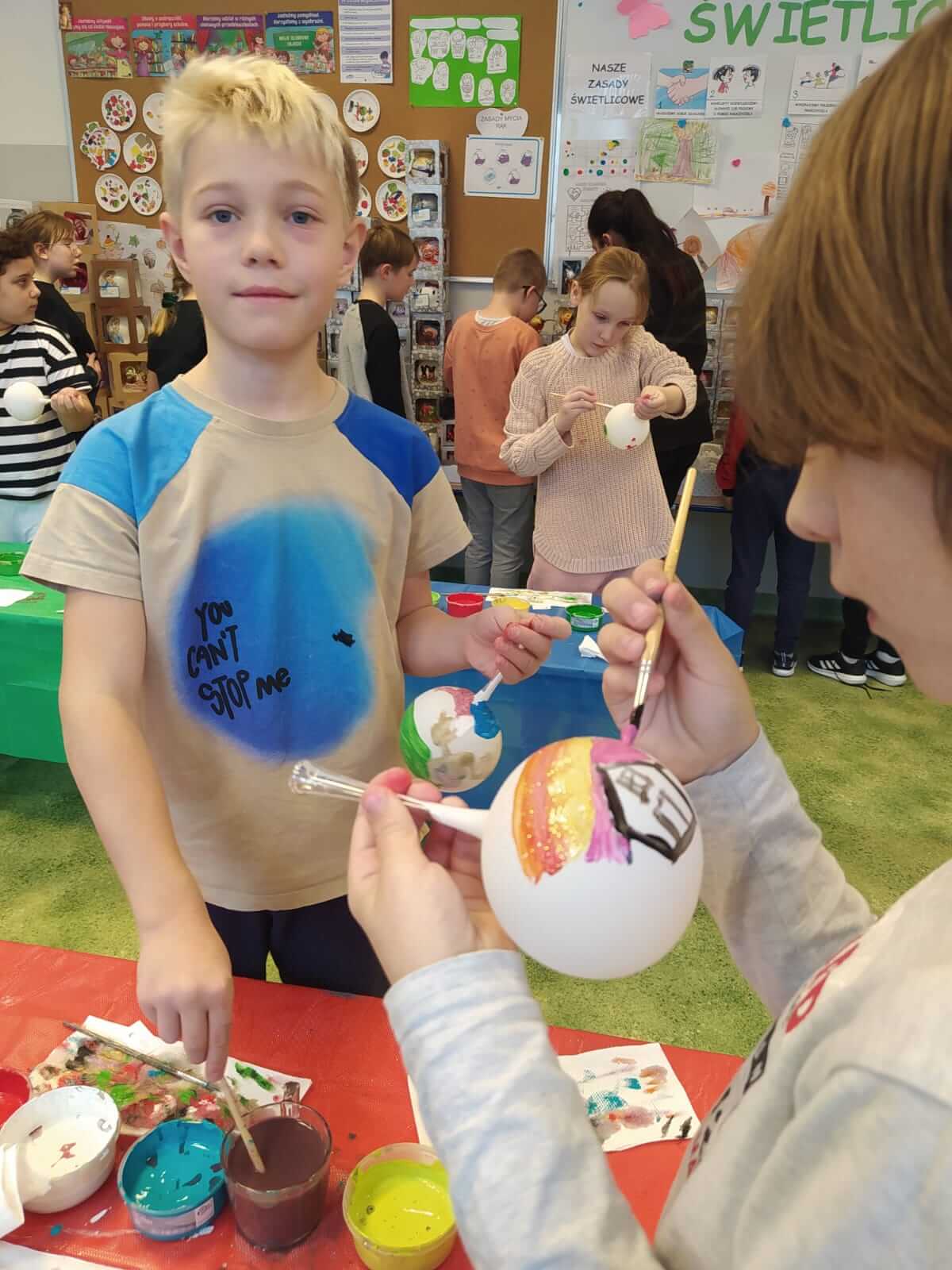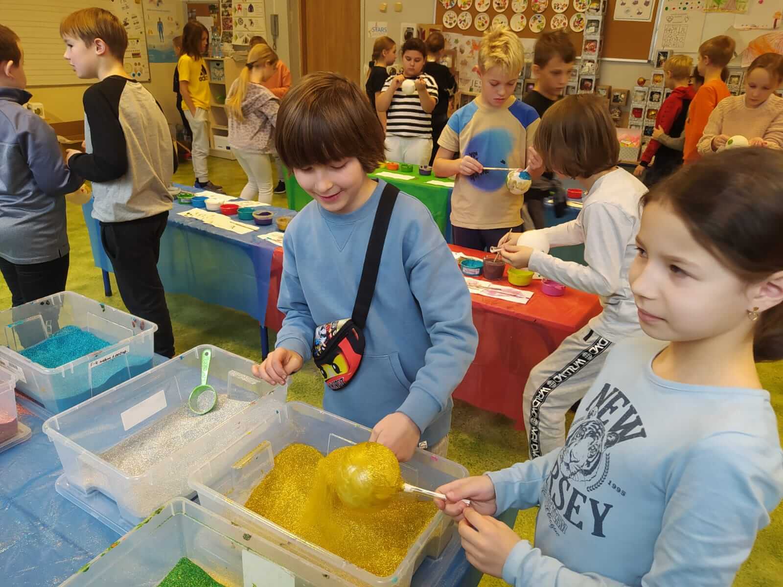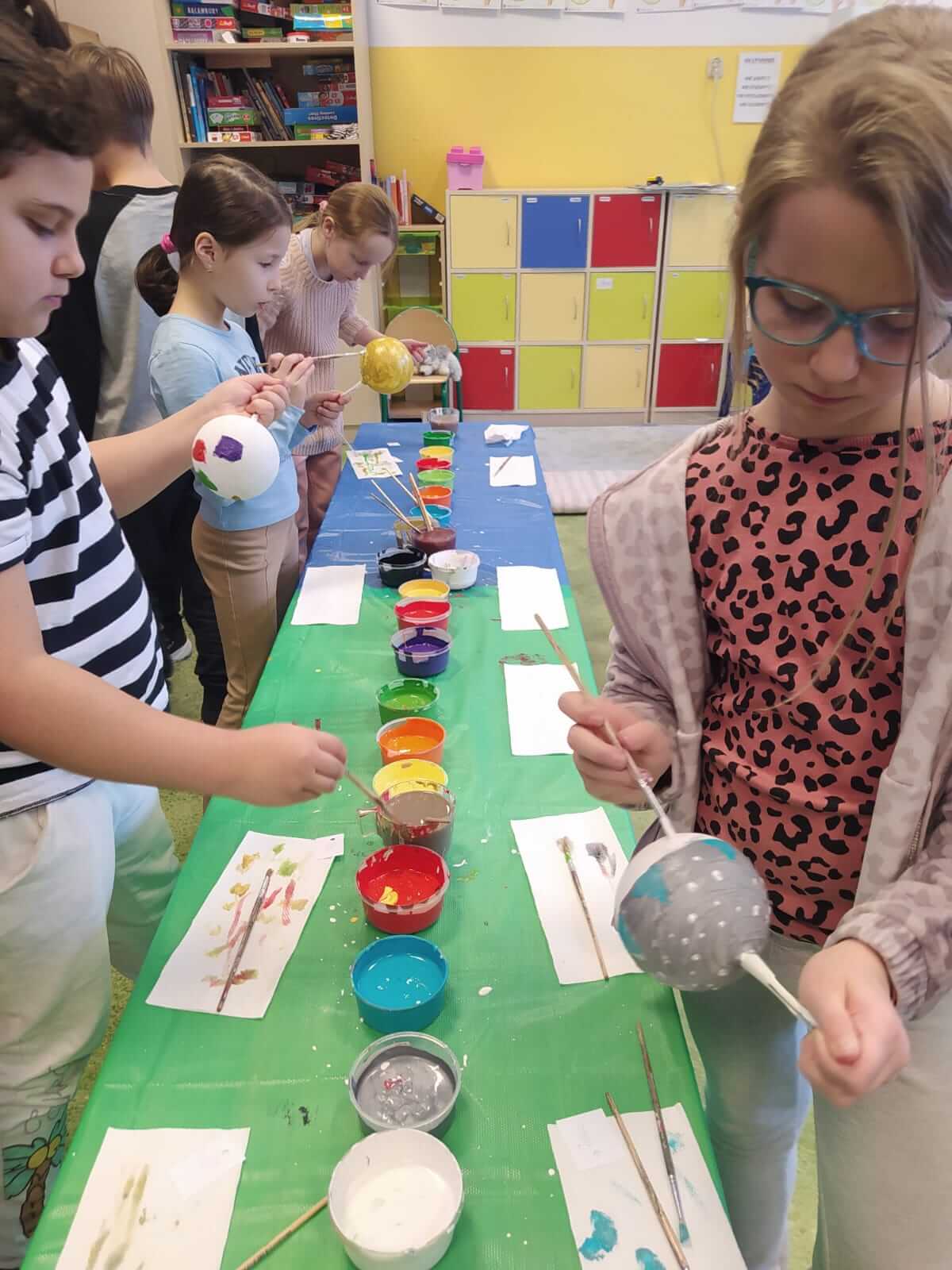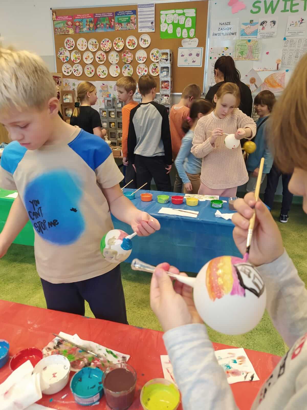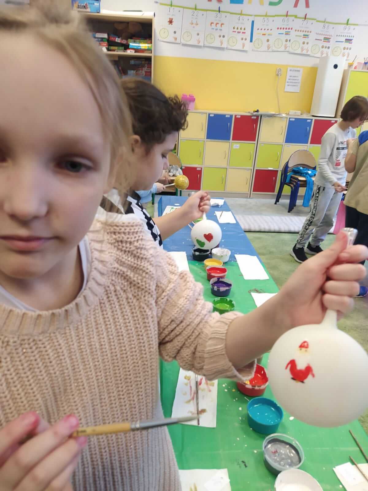 Klasy 1a , 3a i 3b uczestniczyły w warsztatach plastycznych przybliżających proces wytwarzania bombek choinkowych oraz ich dekorowania, Uczniowie i uczennice własnoręcznie pomalowali i udekorowali ozdobę choinkową. Każda wyglądała przepięknie!