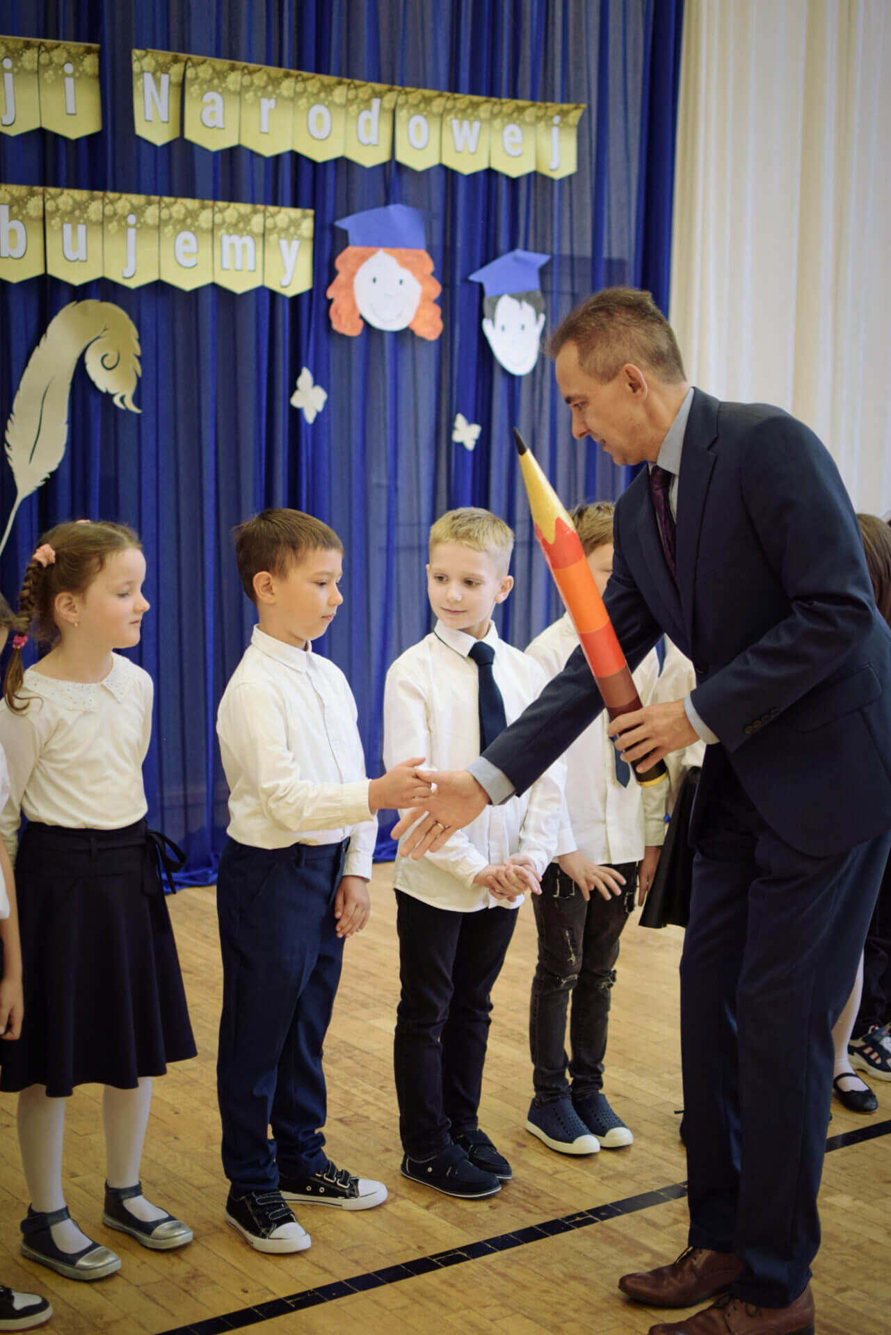 To wydarzenie zawsze wzbudza wiele emocji wśród wszystkich zgromadzonych uczestników. Uroczystość pasowania uczniów klasy pierwszej rozpoczęła się wystąpieniem Pana Dyrektora Pawła Samborskiego, który powitał wszystkich zebranych uczniów, rodziców, nauczycieli i gości. Uczniowie klasy pierwszej 1 a gotowi i odświętnie ubrani przedstawili program artystyczny ale najważniejszym momentem uroczystości było złożenie przez dzieci uroczystego ślubowania oraz pasowanie specjalnym kolorowym ołówkiem na uczniów Szkoły Podstawowej z Oddziałami Integracyjnymi nr 128 w Krakowie, którego dokonał Pan Dyrektor. Na zakończenie wszystkie dzieci otrzymały tarcze szkolne na znak przyjęcia w poczet szkolnej społeczności.