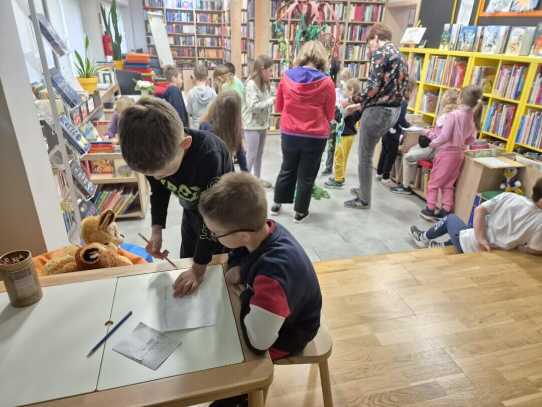 1a uczestniczyła w warsztatach zorganizowanych przez Bibliotekę Publiczną nr 14. Uczniowie zapoznali się z pracą bibliotekarki i bibliotekarza. Mieli okazję sprawdzić czy łatwo jest znaleźć książkę, której ktoś poszukuje. Współpracowali przy pisaniu wierszy. Dużo się nauczyli i świetnie bawili. Część naszych uczennic i uczniów to stałe czytelniczki i czytelnicy tej biblioteki. Tak trzymać! Czytanie rozwija wyobraźnię!