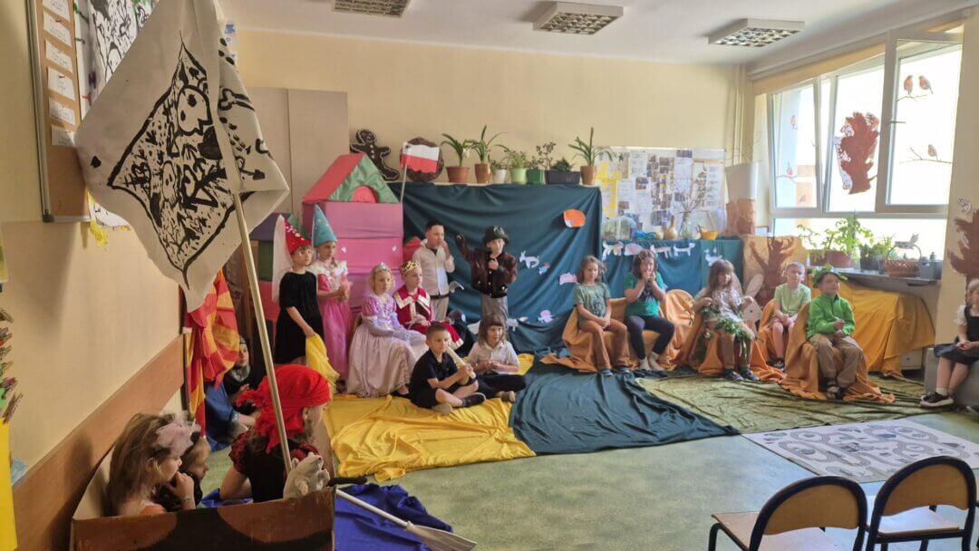 Klasa 1a samodzielnie przygotowała przedstawienie dla rodziców pt. „Bardzo dziwne przedstawienie”. Dzieci przygotowały stroje, dekoracje i fragmenty scenariusza. Zaprosili rodziców, którzy w ramach biletu przynieśli karmę dla zwierząt, którą przekażemy Schronisku Krakowskiego Towarzystwa Ochrony Zwierząt. Wspaniałe przedstawienie, wspaniali aktorzy, wspaniała widownia! I bardzo szczytny cel!
