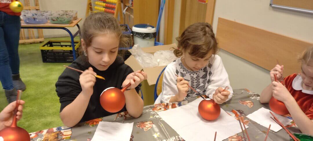 Mikołajkowe warsztaty malowania bombek w klasach 1a, 1b, 2b. Było kreatywnie i bardzo wesoło! W tle leciała świąteczna muzyka, Pani opowiadała nam jak powstają bombki w fabryce i jak bardzo są cenione na świecie. Na pewno zapamiętamy ten dzień na długo!!!