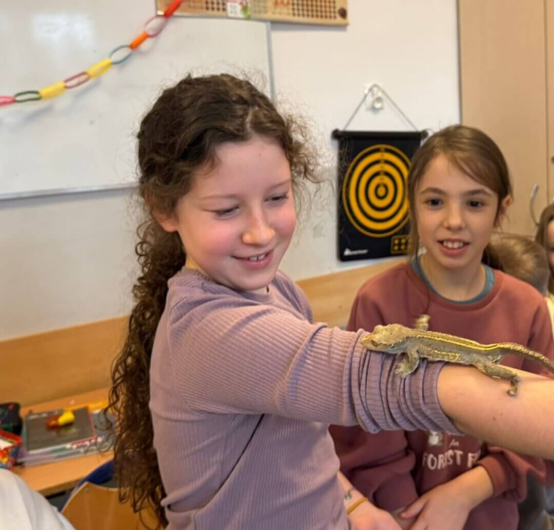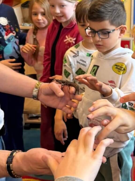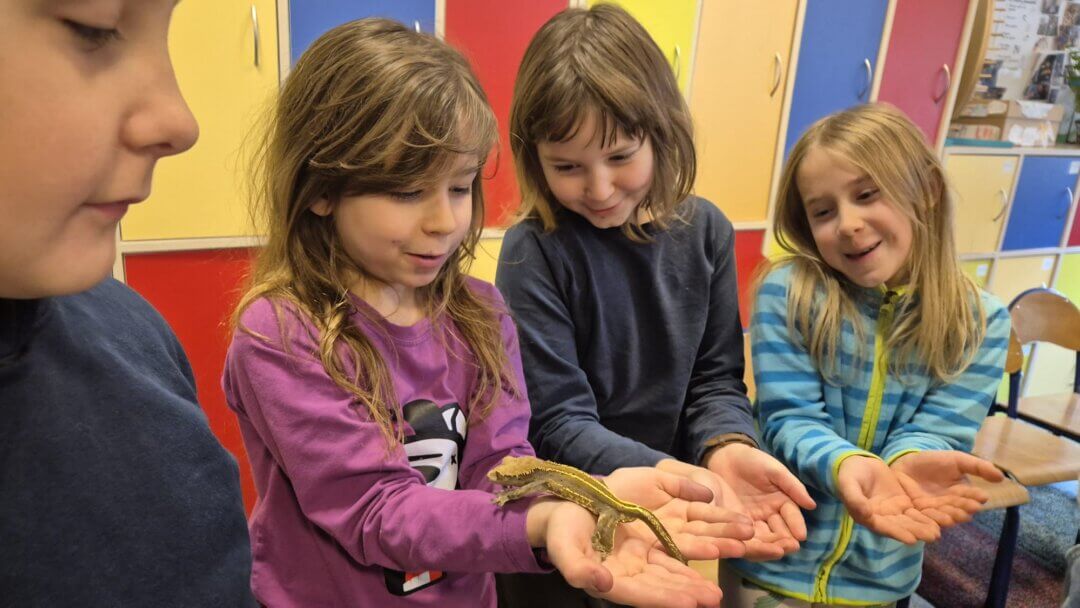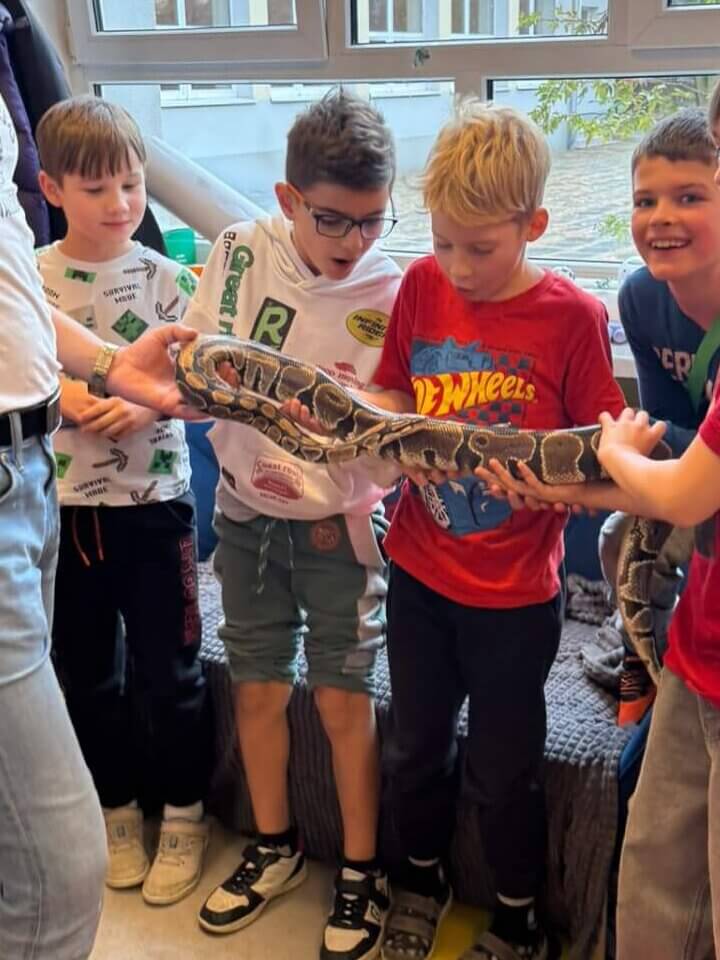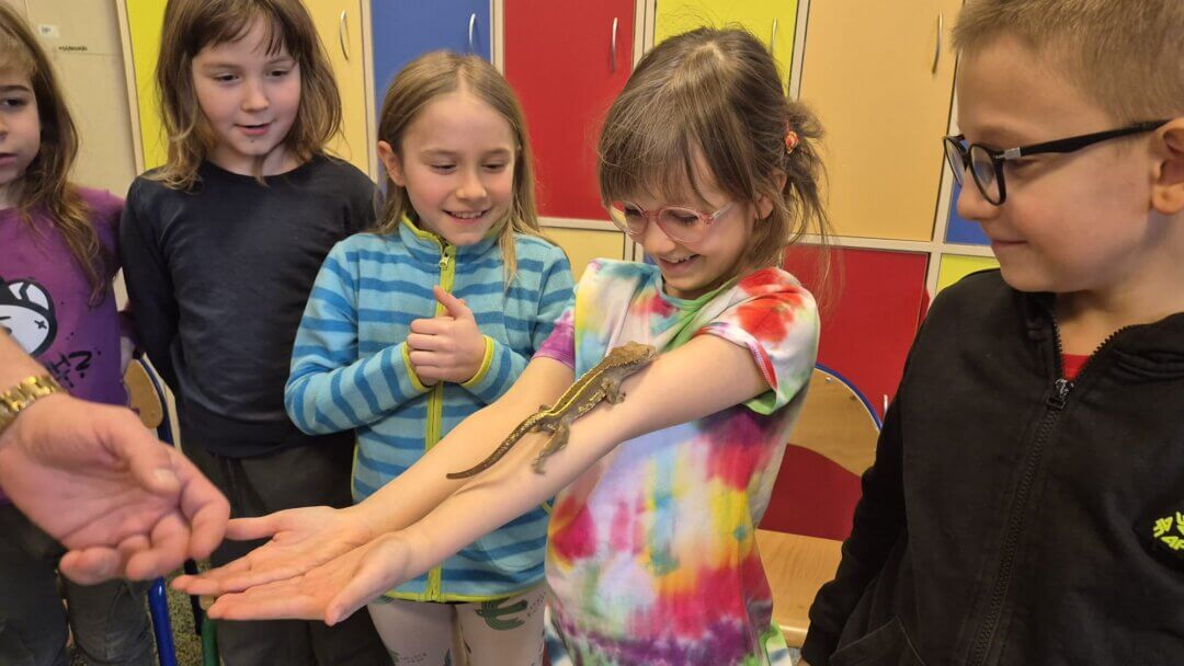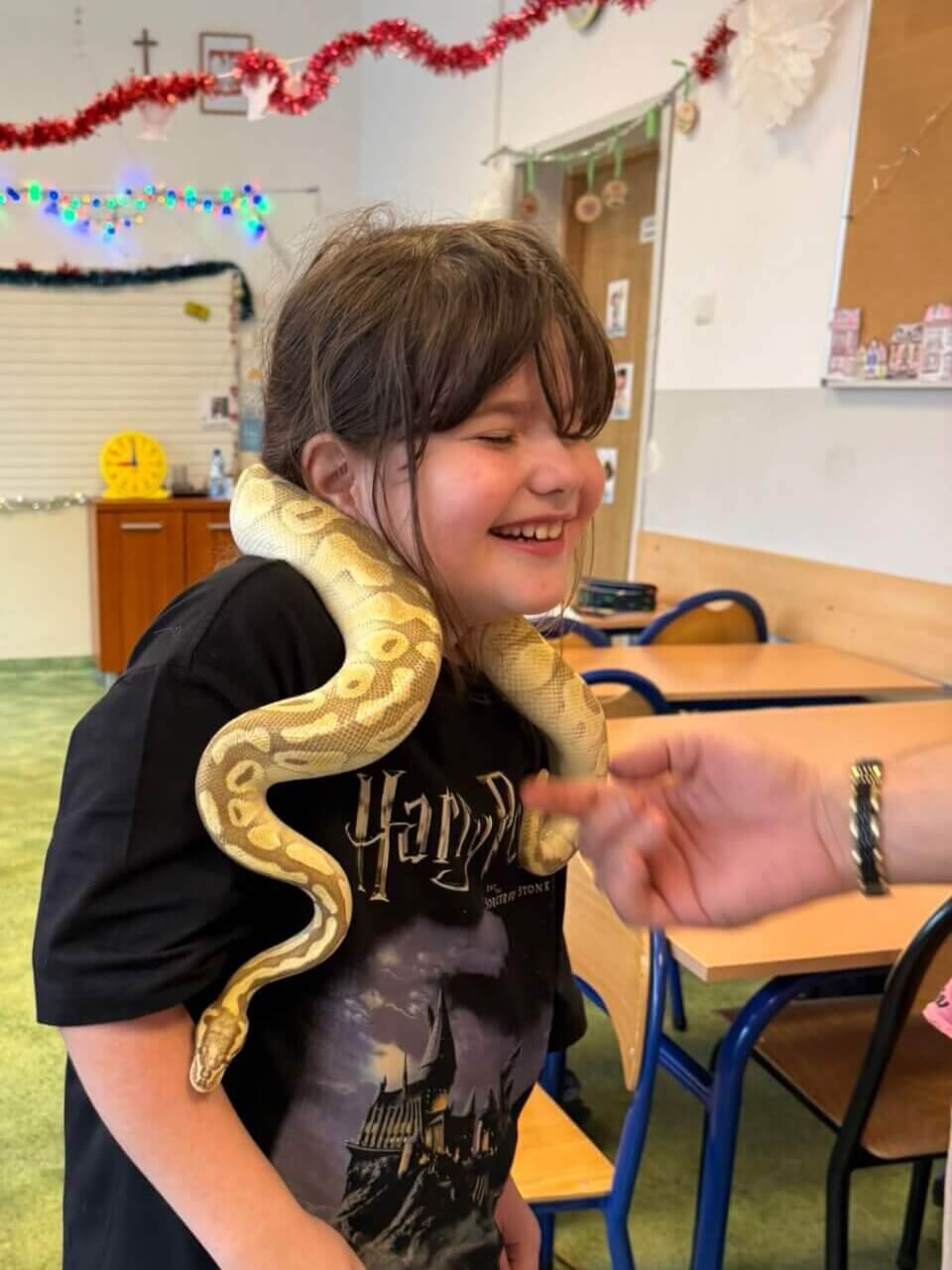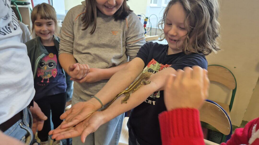 Klasa 2a i 3a otrzymały w prezencie od Św. Mikołaja możliwość spędzenia czasu w towarzystwie wyjątkowych zwierząt. Dzieci z dużym entuzjazmem przyjęły gości, a były to: węże Franek i Kaśka, pająk Tekla, gekon Krzyś, dwie duże agamy brodate wraz z zapasem larw do karmienia, żółw Orzeszek, straszyki australijskie i krab pustelnik. Zwierzęta były spokojne i piękne. Choć niektórym wywołały gęsią skórkę na ciele, to takie zajęcia każde z dzieci na długo zapamięta!