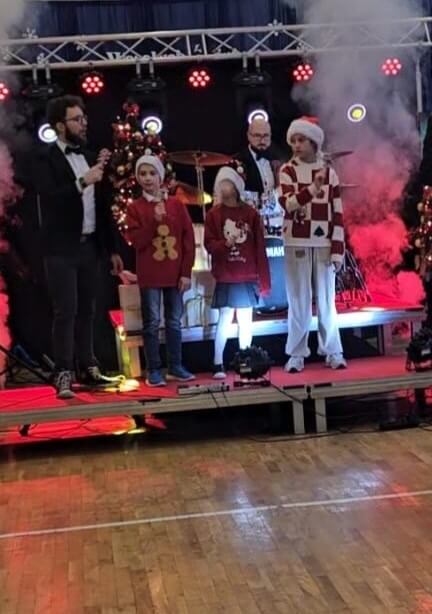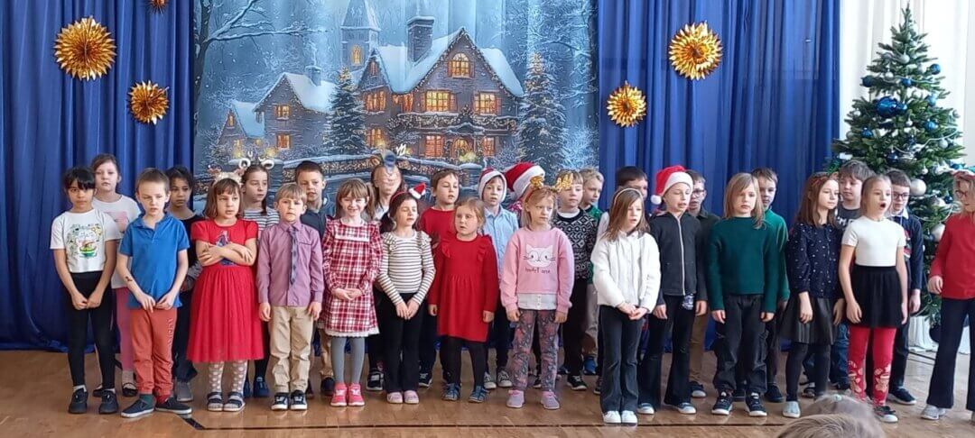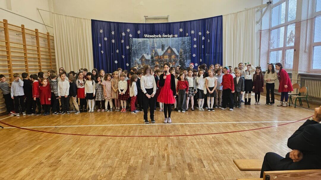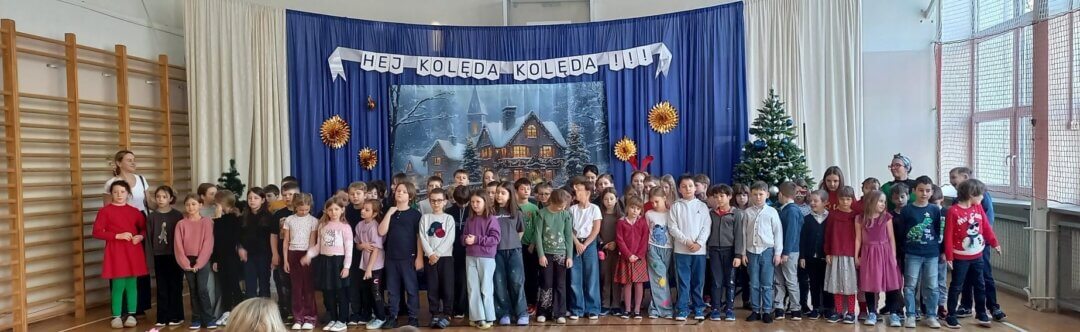 Jak co roku przed przerwą z okazji Świąt Bożego Narodzenia nasi uczniowie i uczennice mieli okazję wysłuchać koncertu w wykonaniu zespołu Yamaha. W grudniowej odsłonie, muzycy zaprosili dzieci na spotkanie z niezwykłym instrumentem jakim jest gitara. Dzieci poznawały budowę tego instrumentu, artyści mieli ze sobą kilka gitar m.in. klasyczną, akustyczną, elektryczną i basową. Niektórzy mogli spróbować zagrać na wybranej gitarze i poczuć się jak gwiazda muzyki. Nie zabrakło również chwilki na zagranie utworów bliskich naszym sercom np. Last Christmas. Po koncercie w magicznej scenerii tradycyjnie popłynęły życzenia świąteczne dla wszystkich, a w Nowym Roku 2026 uczniowie i uczennice z klas 1-3 oraz zaproszone przedszkolaki zaprezentowali swoje umiejętności wokalne na Przeglądzie kolęd i pastorałek.
